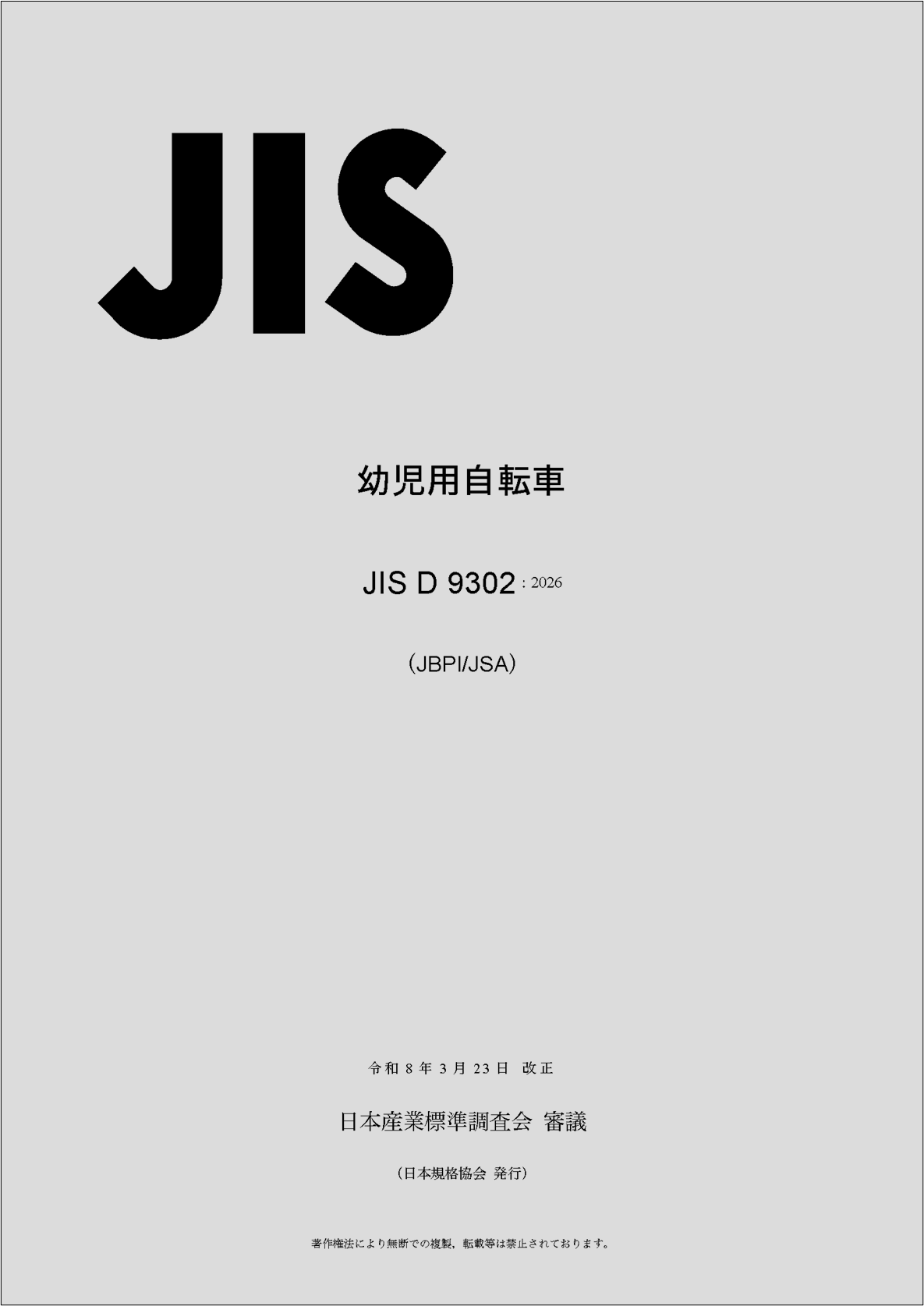 一般財団法人日本規格協会(本部:東京都港区、理事長:朝日弘)は、2026年2月の電動アシスト自転車やスポーツ専用自転車など3規格の改正に続き、2026年3月23日に幼児用自転車に関する日本産業規格(以下、JISという。)を発行いたしました。