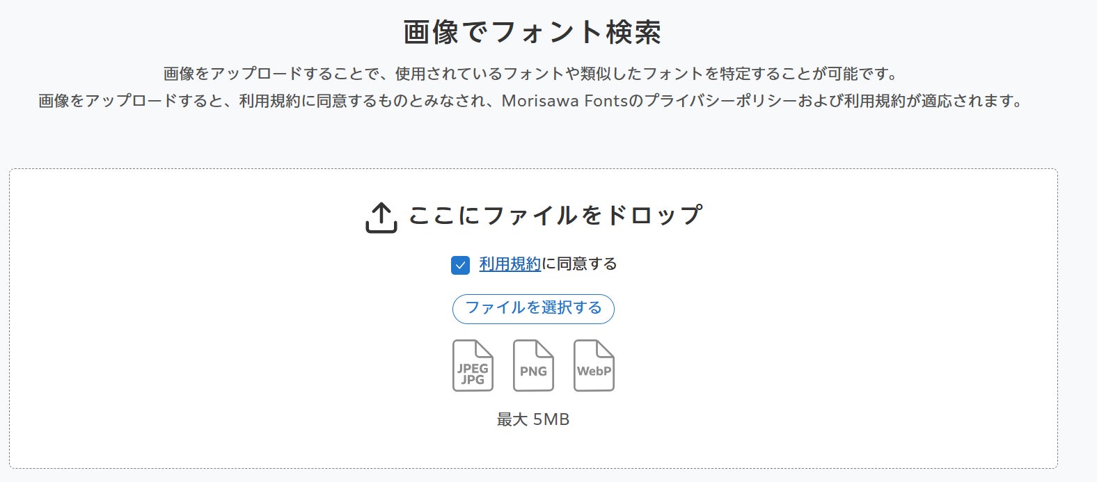 画像をアップロードすることで、使用されているフォントを検索できる機能です。通常、Morisawa Fontsではフォント検索機能で利用したいフォントを検索してアクティベートを行います。今回の機能追加により、フォント名がわからなくても、画像をアップロードすれば利用したいフォントにたどり着くことができるようになり、フォントを探す手間や時間を大幅に省くことができます。