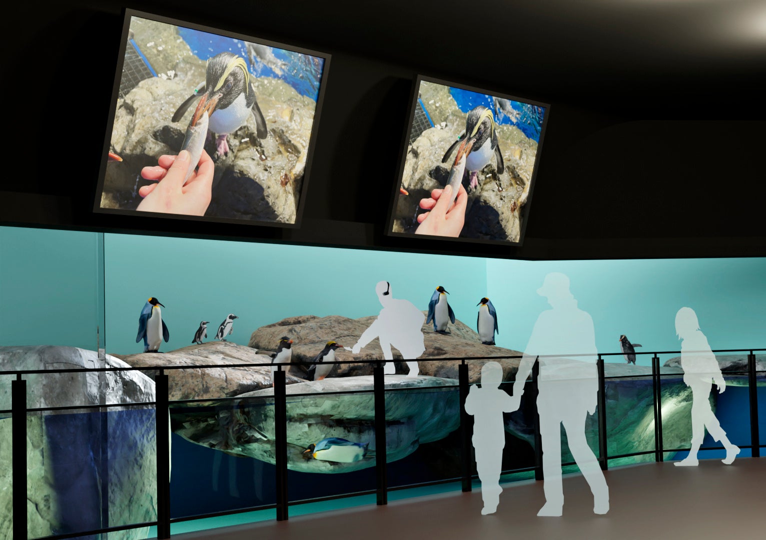 なお、同プログラムの他にも普段は見られない健康管理の様子や生きものたちのライフサイクル、個体紹介などを収録した映像を常時放映。さらに不定期で行う掃除やコミュニケーションタイムには、飼育スタッフ気分が味わえる「キーパーズアイ」がご覧いただけます。