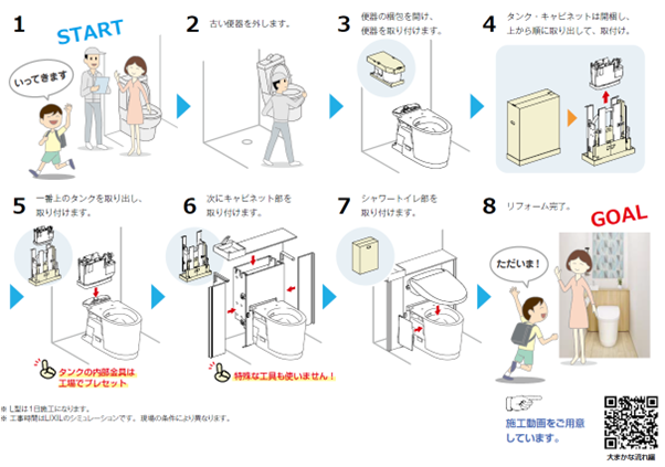 4)その日のうちにトイレが使える半日施工 ※I型の場合