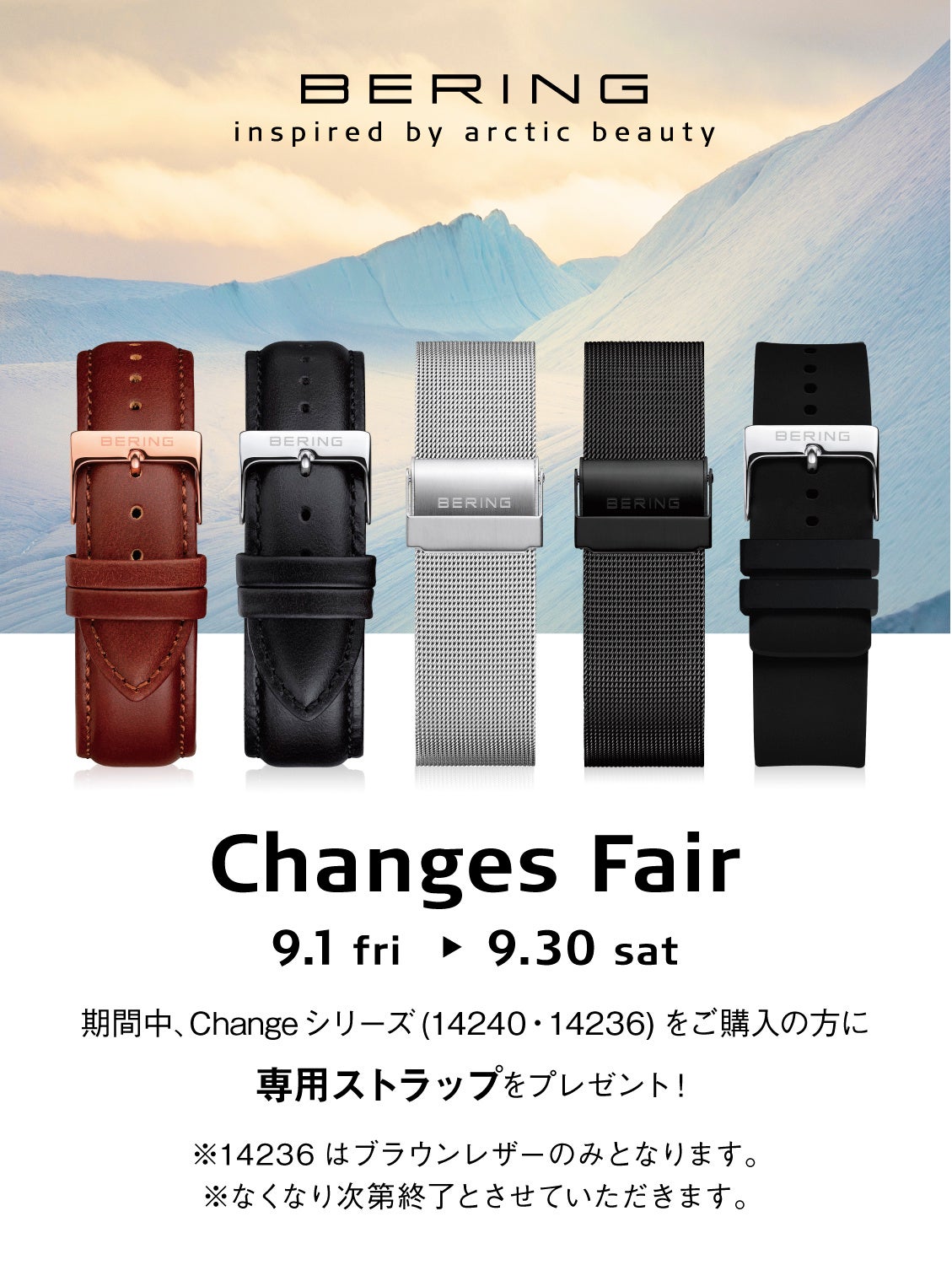 開催内容:期間中、対象店舗でBERING「Changes」のの腕時計をご購入の方に先着で付け替えトラップを1本プレゼント。