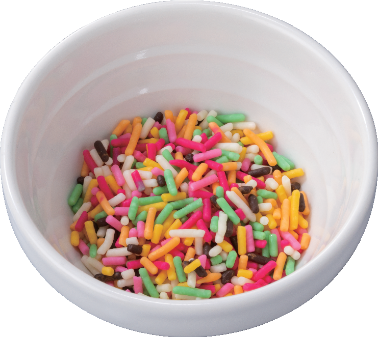 フルーツ、カラースプレーを使いカラフルに仕立てました。