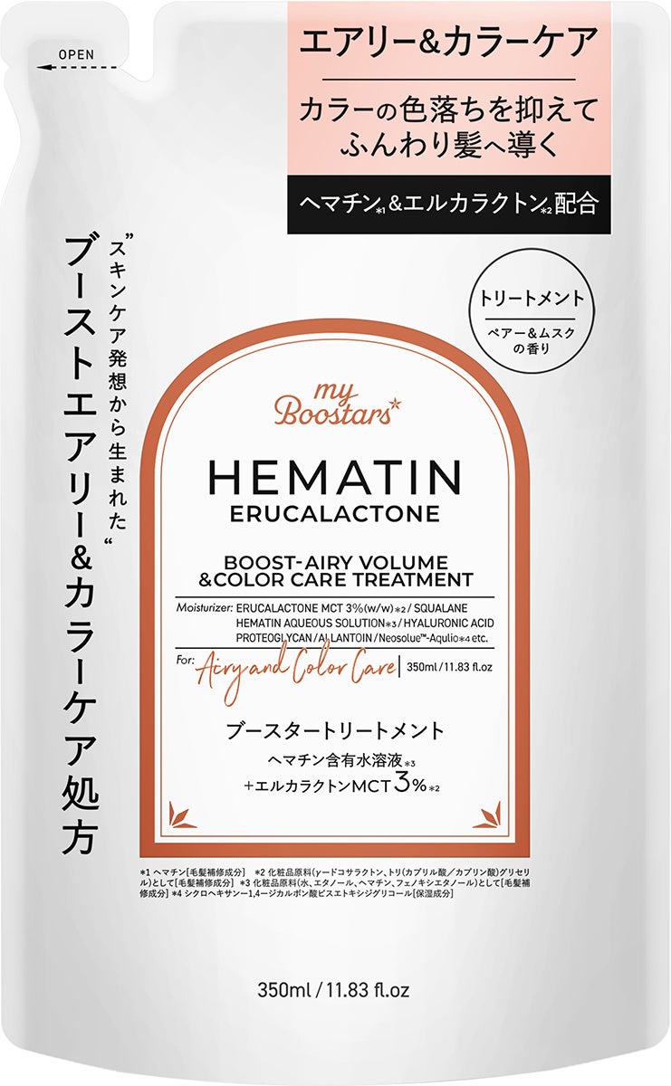 成分美容に注目が集まる今、ヘアケアも成分で選ぶ時代に。スキンケア発想で美容液成分にこだわるヘアケアブランド『myBoostars(マイブースターズ)』は、SNS 等で話題の「ケラチン」と「コラーゲン」2シリーズに続き、色落ちケア※2 と根元がふんわりするのに毛先がまとまる仕上がりを叶える「ヘマチンシリーズ」を、2025年春に新発売します。