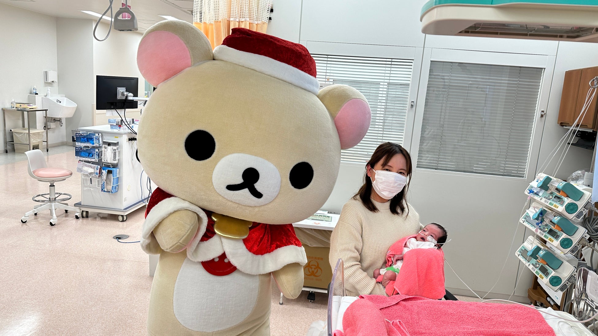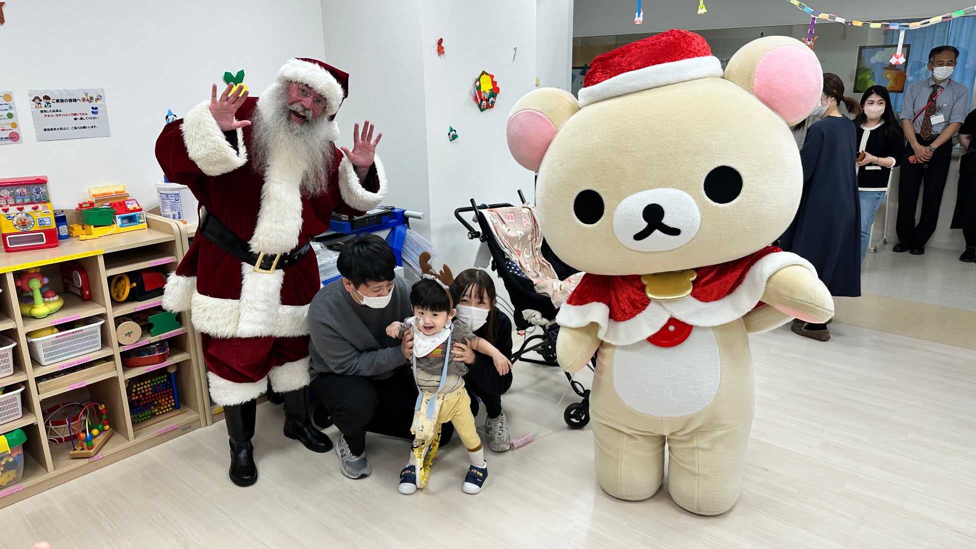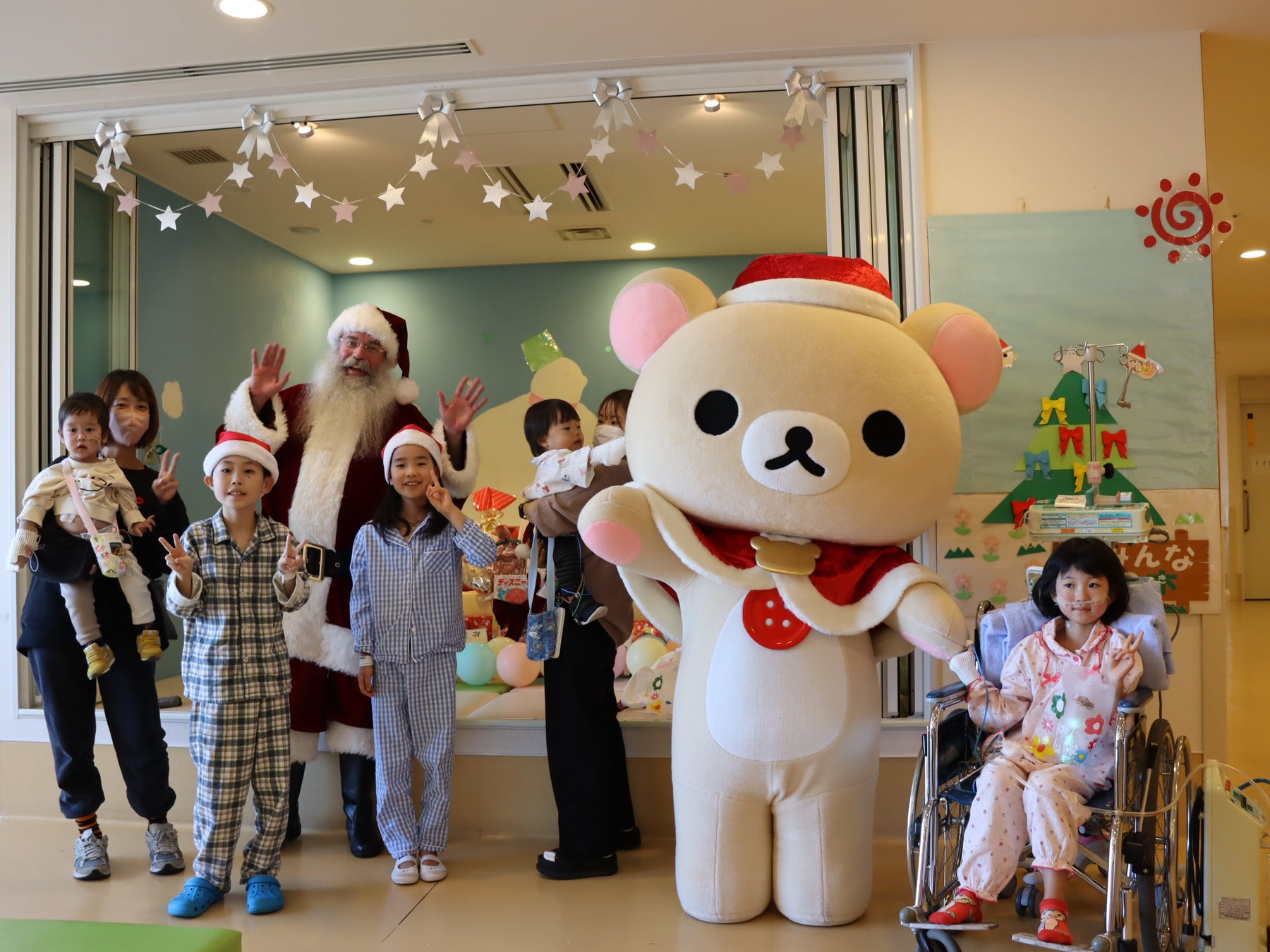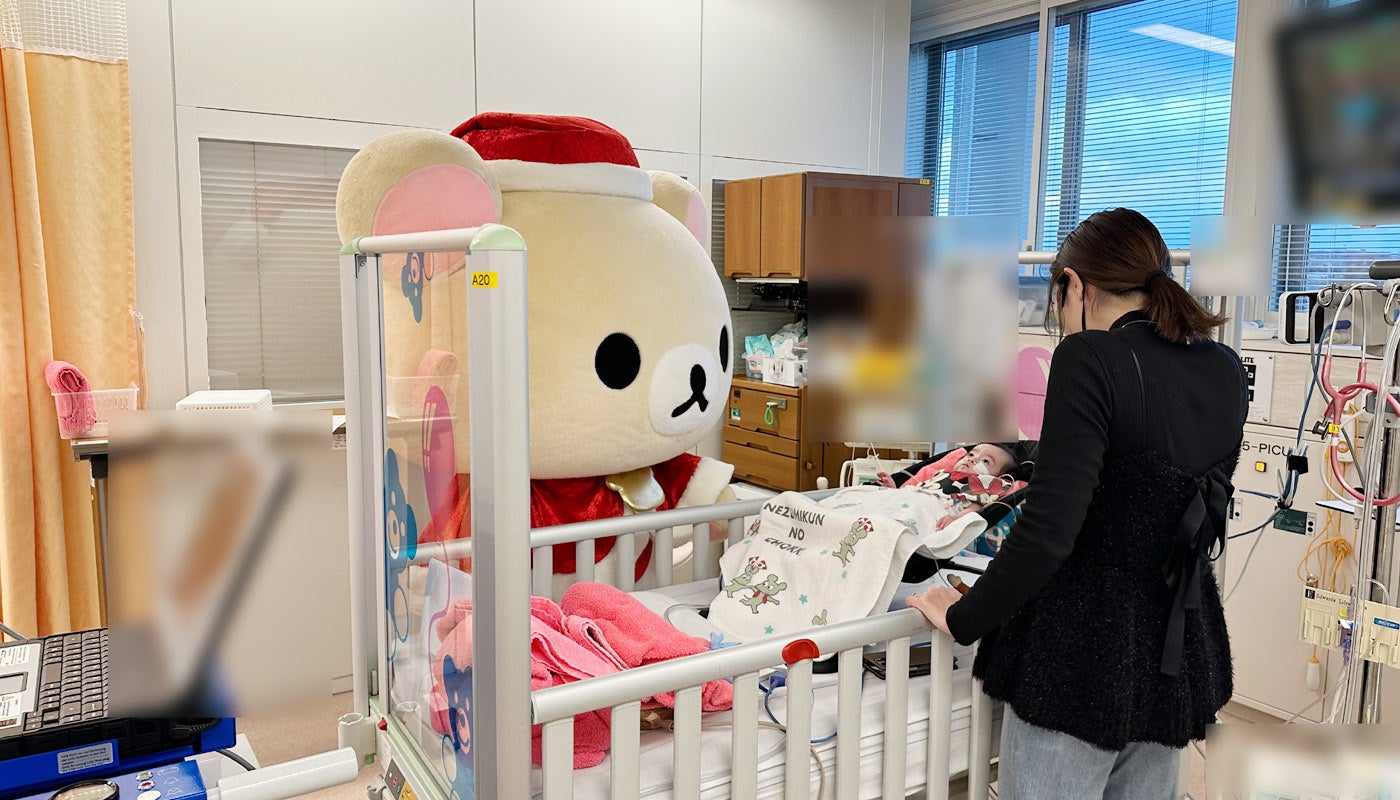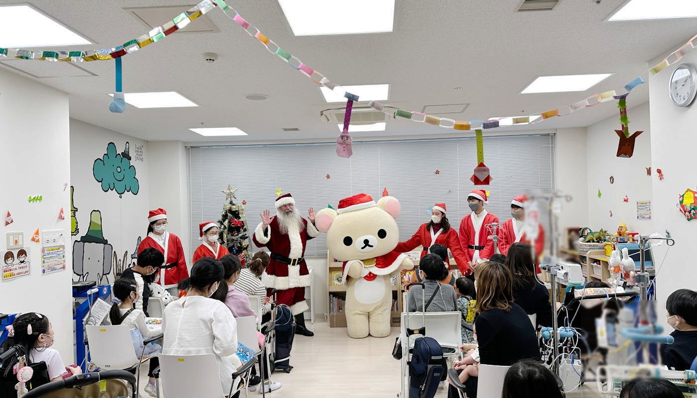 今回、大阪府吹田市にある「国立循環器病研究センター」では12月11日(水)、東京都府中市にある「榊原記念病院」では12月19日(木)にクリスマス会が実施され、「サンタパレード 2024」のスペシャルアンバサダーを務める「コリラックマ」が登場し、病気と闘う子どもたちにプレゼントをお渡ししました。