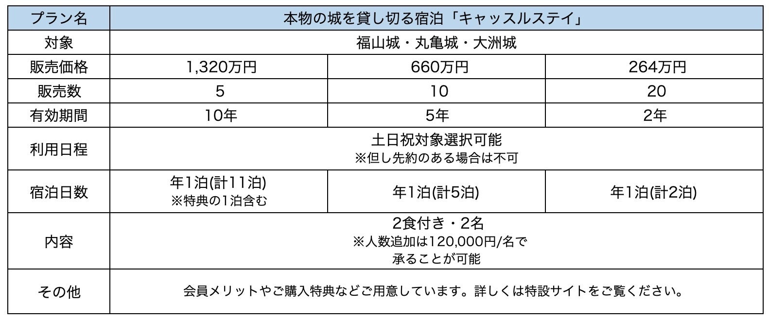 ① 本物の城を貸切宿泊「キャッスルステイ」