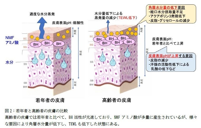 - 若年者と比較して高齢者の角層中ではBH活性が亢進していることを発見