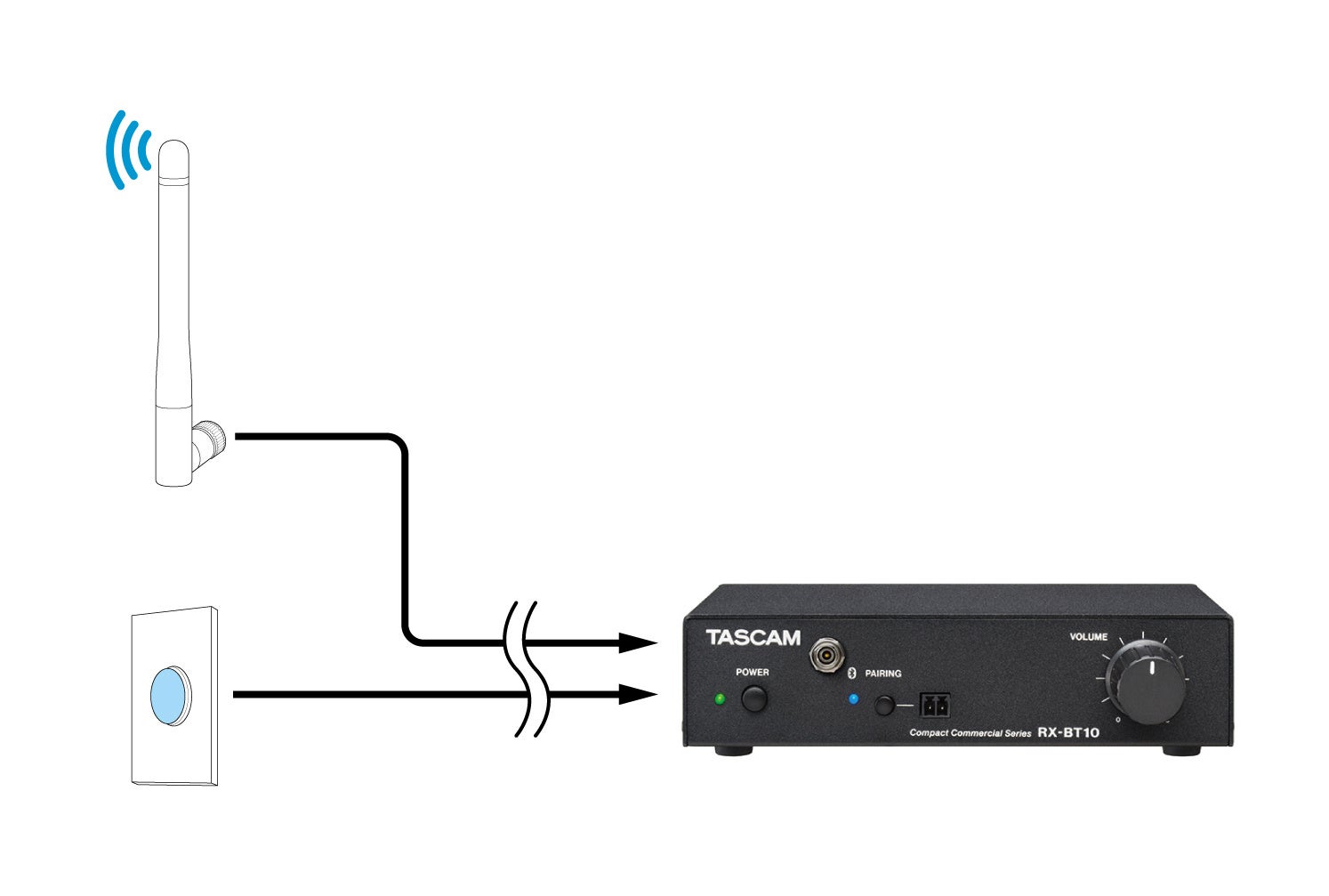 Bluetooth®アンテナを市販のRP-SMAケーブルによって延長することが可能です。また、フロントパネルのユーロブロック端子に外付けのリモートペアリングボタンを接続して延長することができ、自由度の高い設置が可能です。