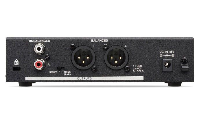 XLRバランス出力とRCAアンバランス出力の両端子を装備し、中規模な業務用システムから簡易的な音響設備までさまざまなシステムに組み込むことができます。オーディオ出力は、リアパネルのスイッチでモノラル/ステレオの切り替えが可能です。