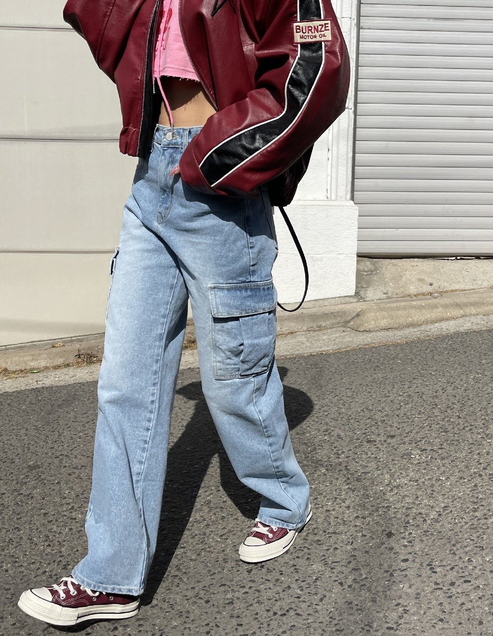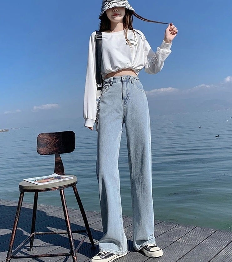 ワイド ルーズ デニムジーンズ(ショップ名:Lewkin)