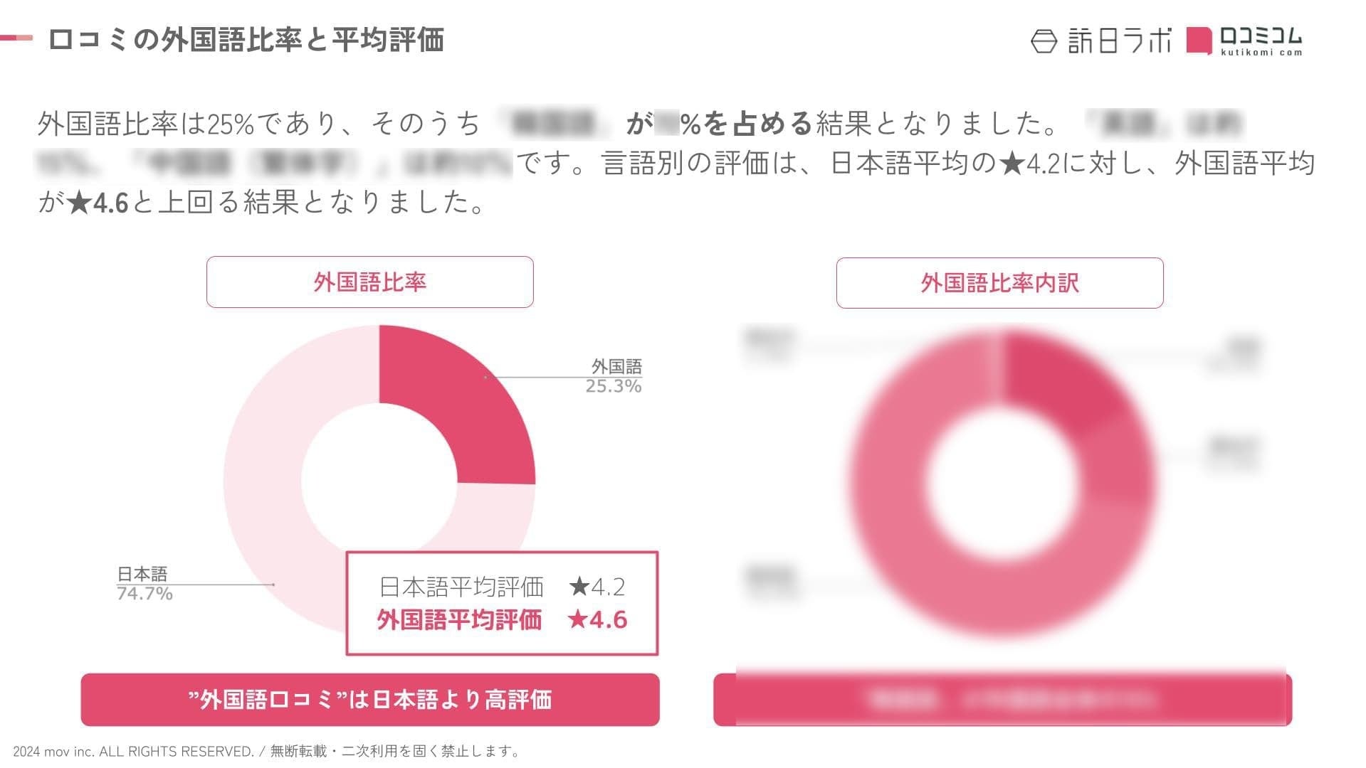 外国語口コミ比率のうち大部分を占める言語が判明しました。