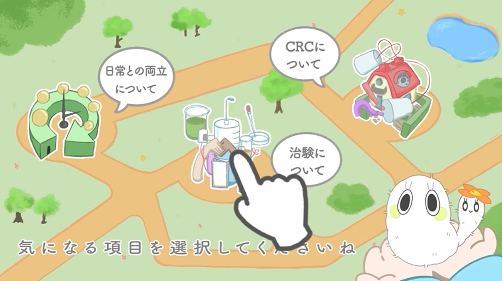 コンテンツ制作においては、「治験がどのように進められるのか」「治験に参加した場合の費用や補償について」「治験中に起こり得る体調変化や副作用への対応」など、説明時に患者さんやご家族から多く寄せられる質問を整理し、文章による説明を補足する目的で、視覚的にわかりやすい情報提供を目指しました。