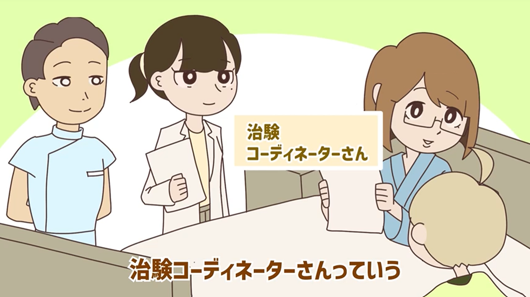 治験は、新しい薬や治療法を開発する際の最終段階として、患者さんに協力いただき、人での有効性と安全性を確認する重要な試験です。そうして得られた試験結果を国が審査し、承認を得たものが薬として使用できるようになります。新しい薬や治療法が医療現場で適正に使用されるためにも不可欠なプロセスですが、治験について初めて説明を受ける患者さんやご家族にとっては、情報が多岐にわたるうえに専門用語が多いためその理解は簡単ではなく、治験を説明する医療従事者にとっても説明に時間を要するという課題が存在しています。