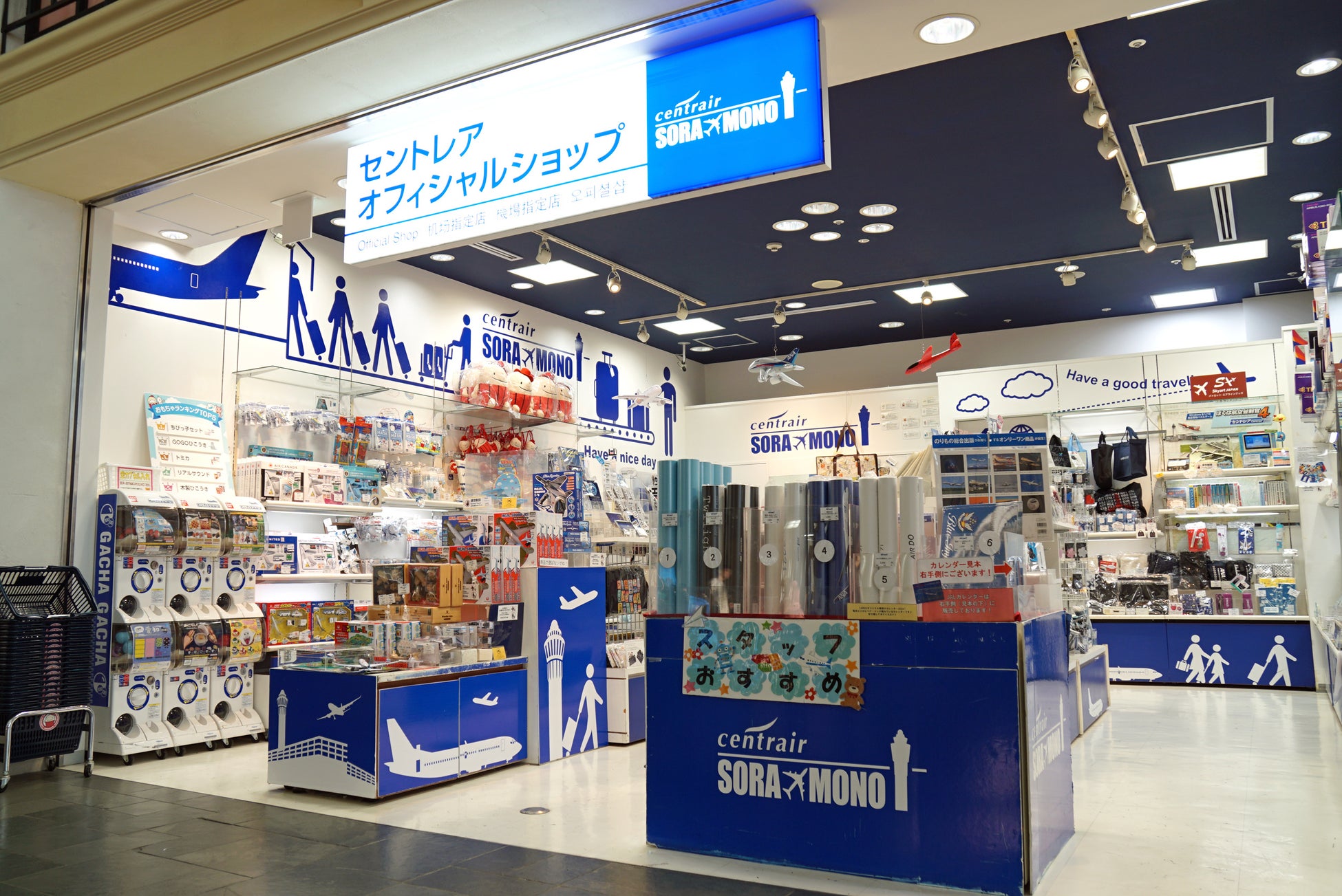 オリジナルキャラクターのセントレアフレンズ商品に加え、SORA MONOオリジナルグッズ、航空ファン必見のエアライングッズなど、豊富な品揃えでみなさまをお迎えいたします。