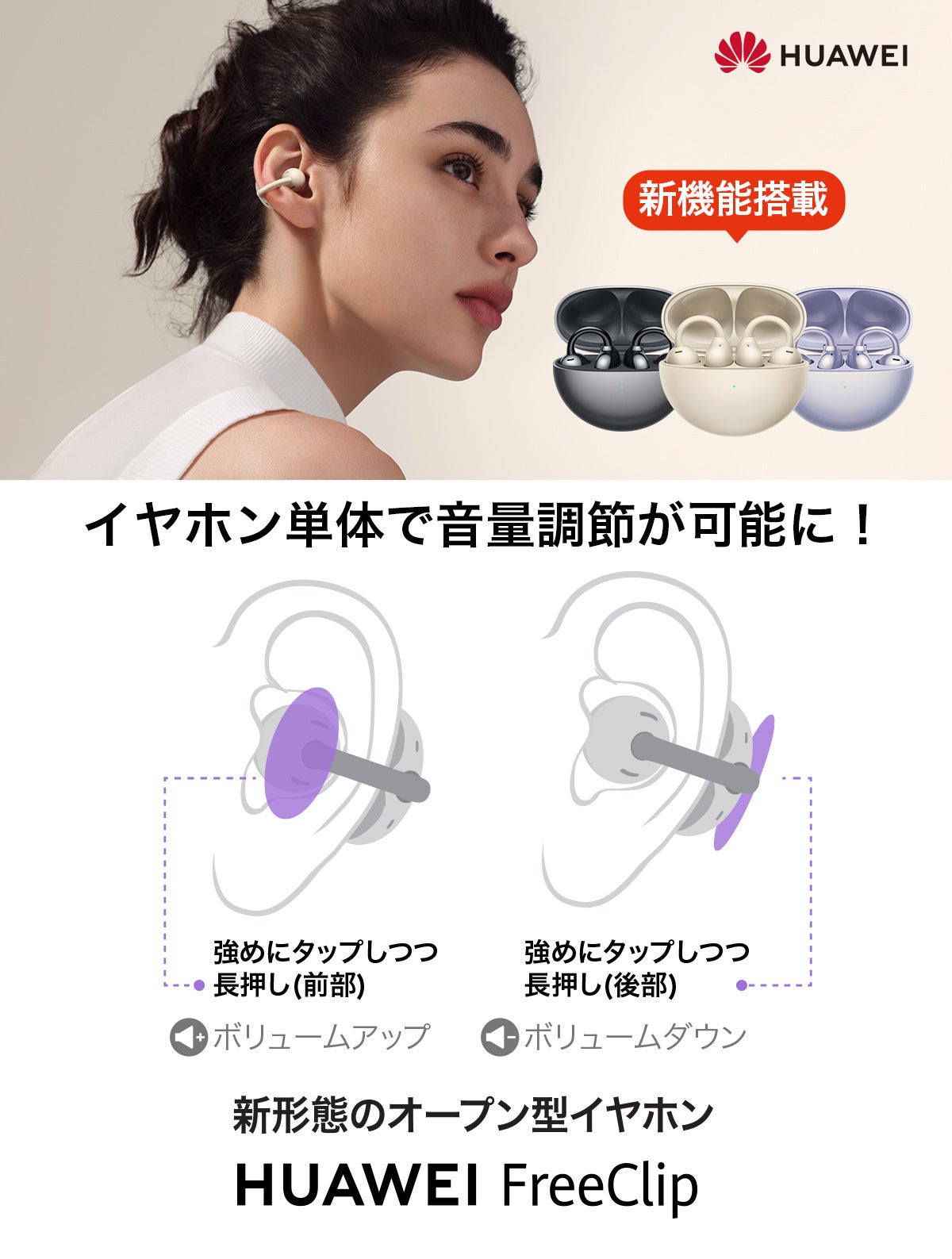 『HUAWEI FreeClip』ユーザーリクエスト多数の「イヤホン単体での音量調節」機能をアップデート 5月31日(金)~6月3日(月)までお得に買えるキャンペーンも実施!