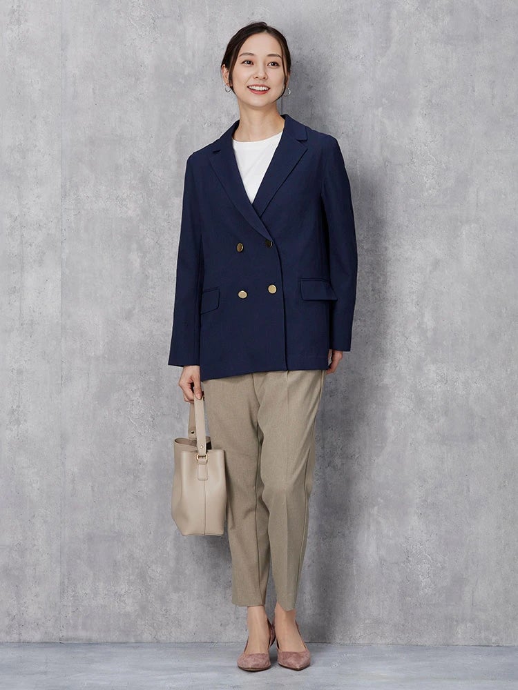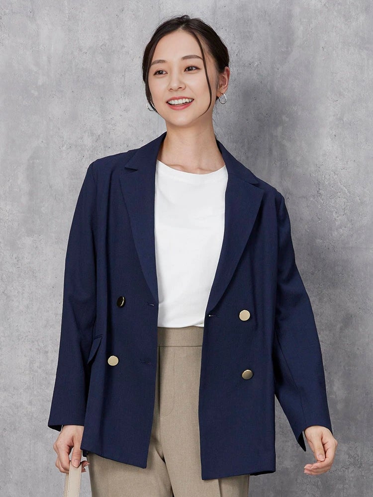 P.S.FAレディスから今買って秋まで着られるさらっと軽い着心地とトレンドを抑えたデザインがポイント夏のオフィカジにマストバイなドライタッチダブルジャケット登場