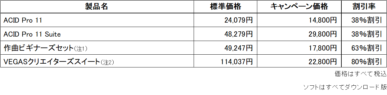 また発売を記念し、本日から31日(水)までの期間、『The Chance 作曲の世界を変える「ACID Pro 11」割引フェア』を開催します。期間中は本製品を含む4製品を最大80%割引で提供します。