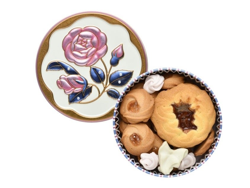 上品さのなかに、懐かしく親しみのある味わいを散りばめたバラ風味のクッキー缶です。