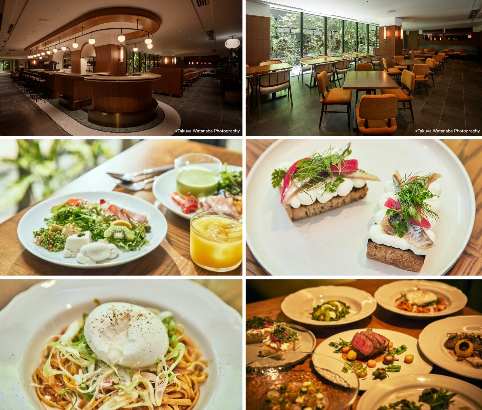 併設のラボラトリーでつくられるフレッシュチーズと、自家製のフレッシュパスタをはじめ季節の食材を掛け合わせたイタリアンを季節ごとにお楽しみいただけます。日本橋兜町のイノベーティブレストラン「Neki」、世田谷代田橋の薪火料理「songbook」、虎ノ門のジャンルレスな居酒屋「Uke」を手がける西恭平氏をメニューのアドバイザーとして、既成概念にとらわれず、かつ親しみやすいメニューを朝食・ランチ・ディナーまでご提供。通りに面したテラス、吹き抜けの中庭、店内はシーンに合わせてお席のスタイルが選べる164席の空間で、ゆったりとした気分でお過ごしいただけます。内装デザインは地元京都で活躍するFHAMSが手がけ、照明やこだわり抜かれたインテリアで構成された、居心地の良い空間となっています。朝食からランチ、カフェタイム・ディナーまで、宿泊者も、地域の方もご利用いただけます。