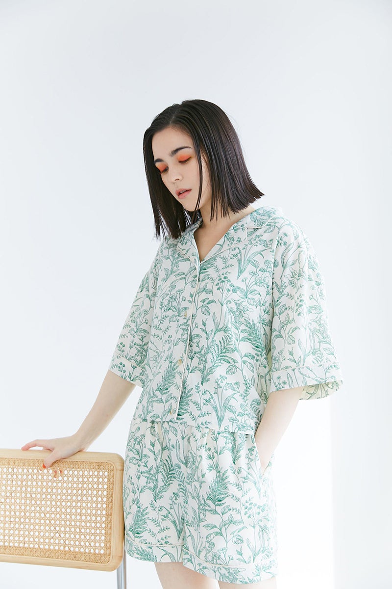 ラインアップは袖のデザインにこだわったトップス、マーメイドラインを意識したティアードスカート、2wayのプルオーバーなど全7型。中でも「トワルドジュイ柄」をKBFらしく落とし込んだ「キノコボタニカル柄」のセットアップはGreen Parks限定のデザイン。夏らしい涼し気な、遊び心があるプリントで、抜け感のあるこなれた印象を演出します。