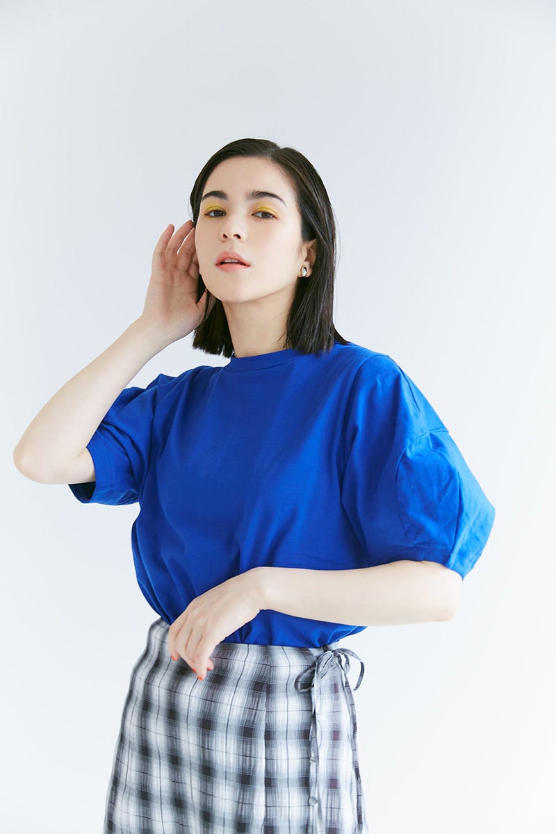 ぽわんとした袖が印象的。Tシャツならではの楽ちんさを備えながらもトレンド感をしっかり押さえたデザイン。