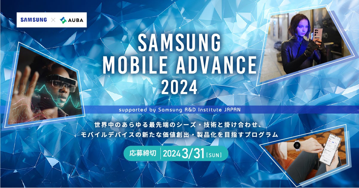 株式会社eiicon(エイコン 本社所在地:港区虎ノ門、代表取締役社長:中村 亜由子、以下 eiicon)が運営する日本最大級のオープンイノベーションプラットフォーム「AUBA(アウバ)」は、2024年1月15日(月)より、株式会社サムスン日本研究所(本社所在地:横浜市鶴見区、代表取締役:多田 充、以下 サムスン日本研究所)が主催する、世界中のあらゆる最先端のシーズ・技術と掛け合わせ、モバイルデバイスの新たな価値創出・製品化を目指すプログラム『Samsung Mobile Advance 2024(以下、本プログラム)』の共創パートナー募集受付をAUBAにて開始することをお知らせいたします。