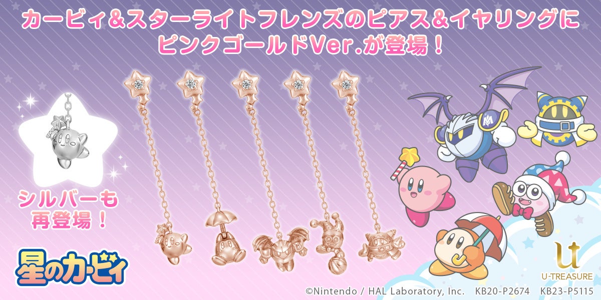 【星のカービィ】カービィ&スターライトフレンズ。ピアス・イヤリングのピンクゴールドVer.新登場。シルバーVer.も再登場して7月10日(月)まで予約受付