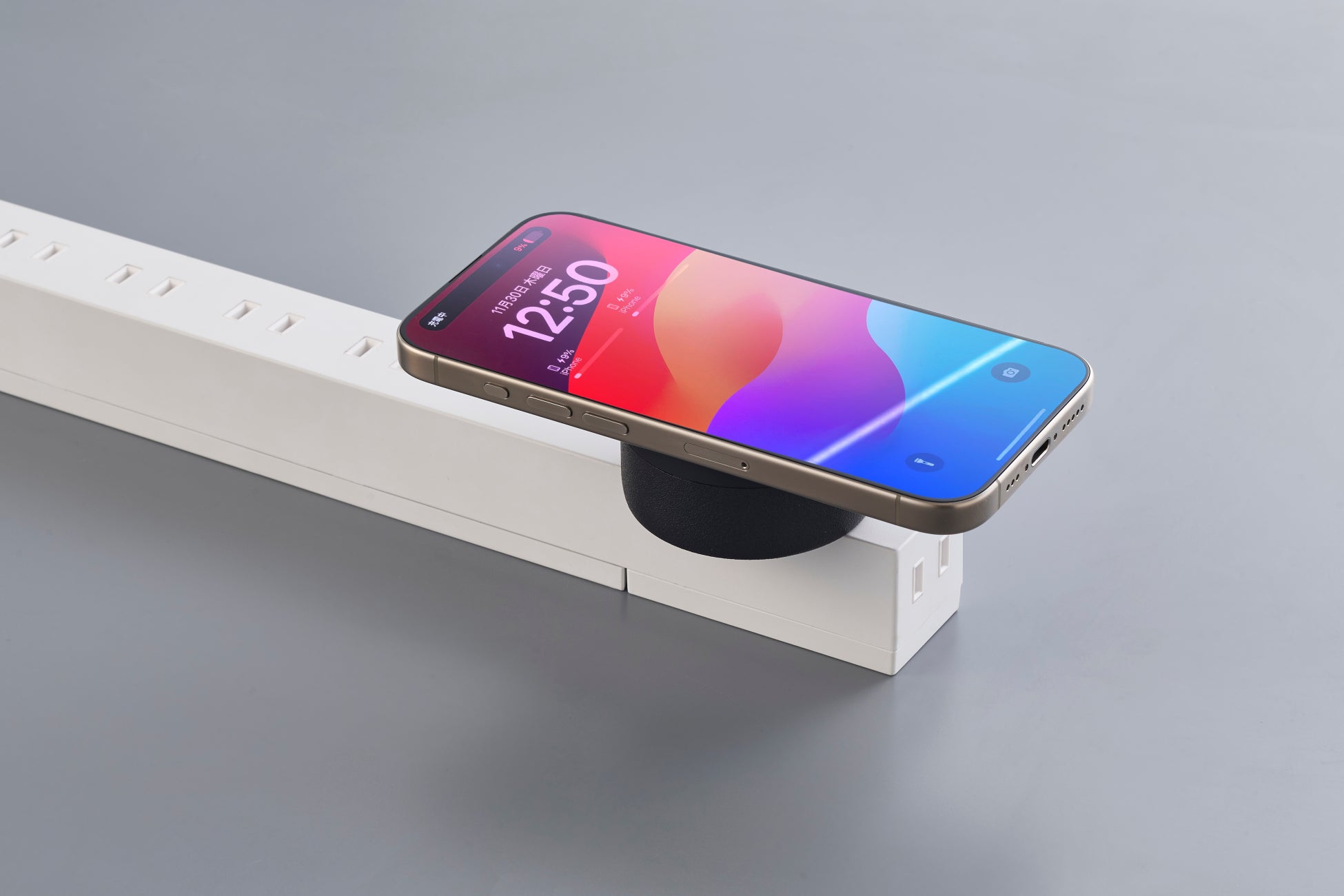 本製品はマグネット吸着式ワイヤレス充電規格“Qi2”を採用。コンセントプラグを一体化することで、ケーブルを一切使わず充電できる“完全ケーブルレス”充電を実現。本製品をコンセントに挿すだけで充電スポットが完成、スマートフォンを載せるだけで充電が可能です。
