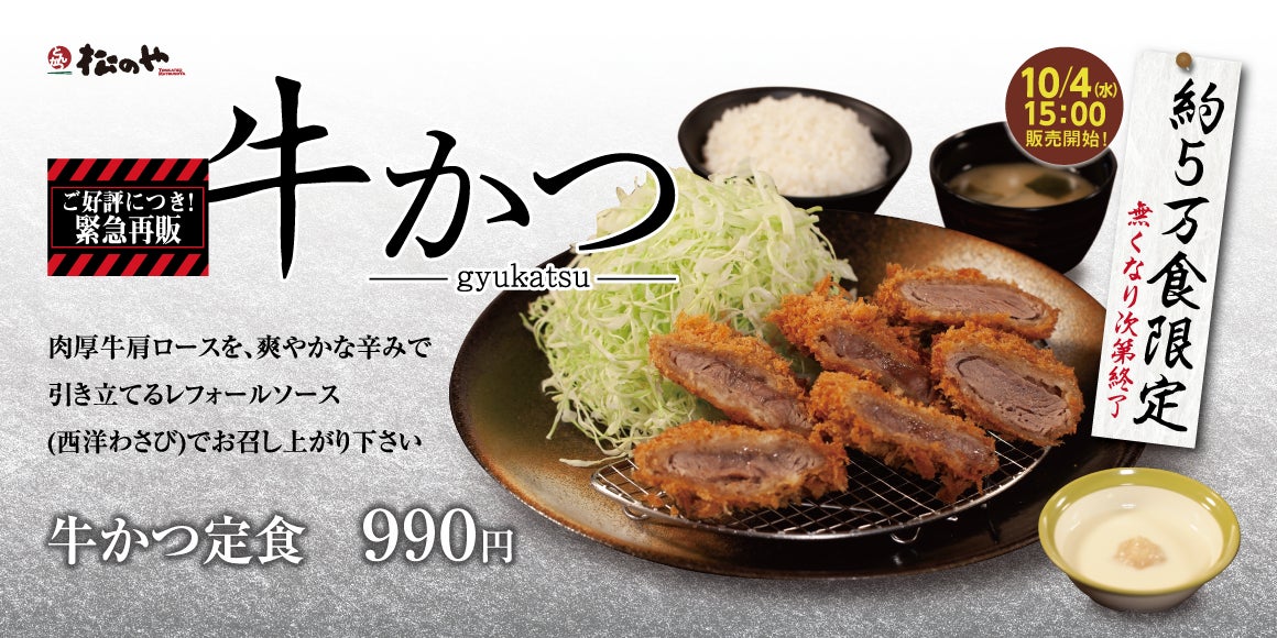 【松のや】約5万食&店舗限定販売「牛かつ」復活!
