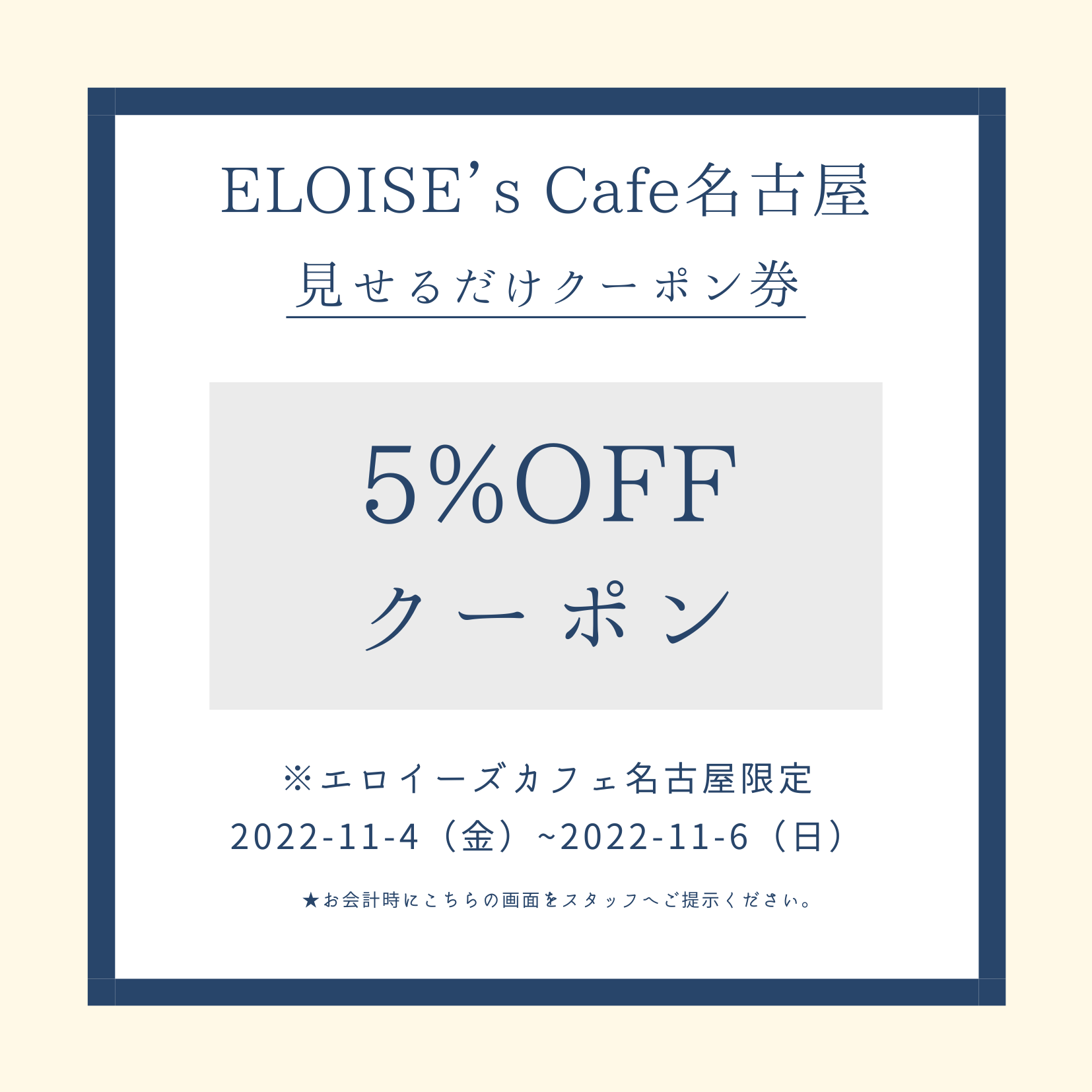 【久屋大通公園】台湾・台中夜市 2022開催に伴い、エロイーズカフェをお得にご利用できる5%OFFクーポンを配布致します。