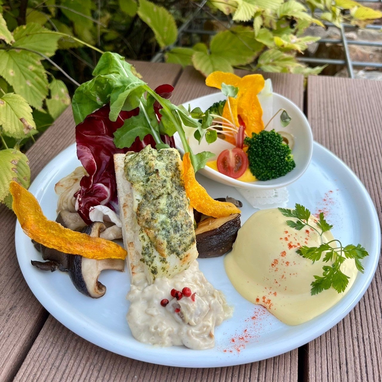 さっぱりとした白身魚をパセリバターで風味豊かに焼き上げました。4種のキノコと共にお召し上がりください。
