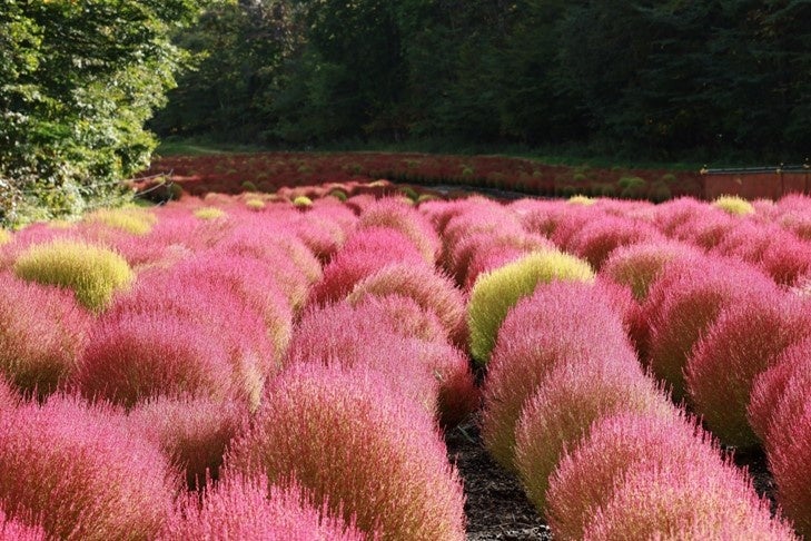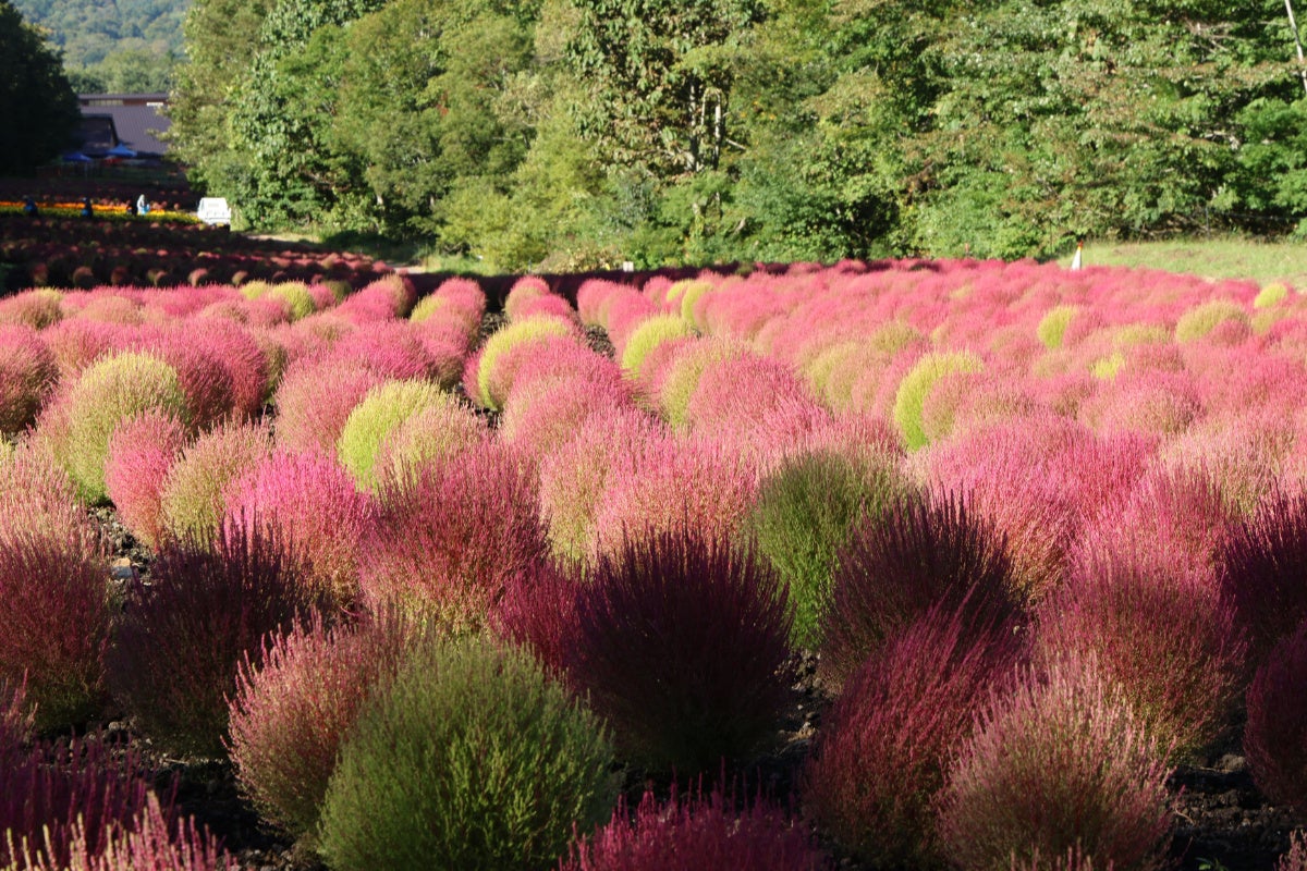 たんばらコキアガーデン コキア 1 万株の紅葉が見ごろ
