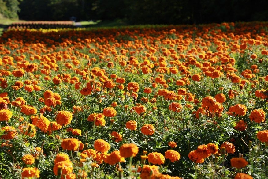 たんばらコキアガーデンは、園内にある約 8,000 ㎡の敷地内に、約 1 万株のコキアと約 4,000 株のマリーゴールドを植栽した、期間限定のフラワーパークです。