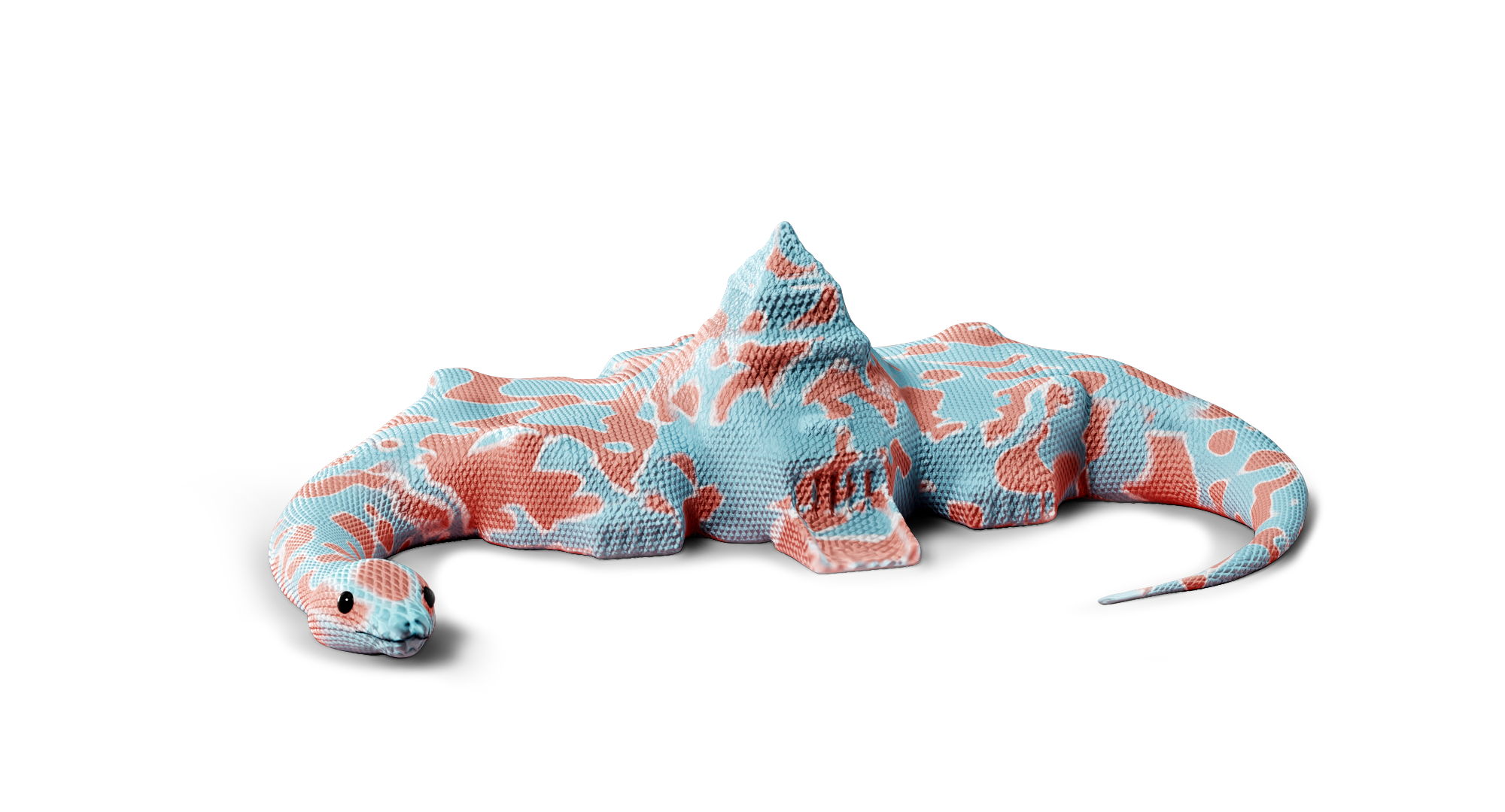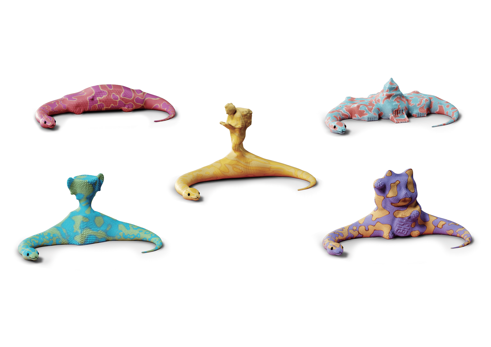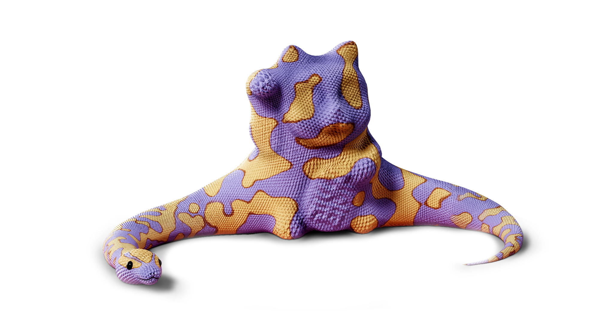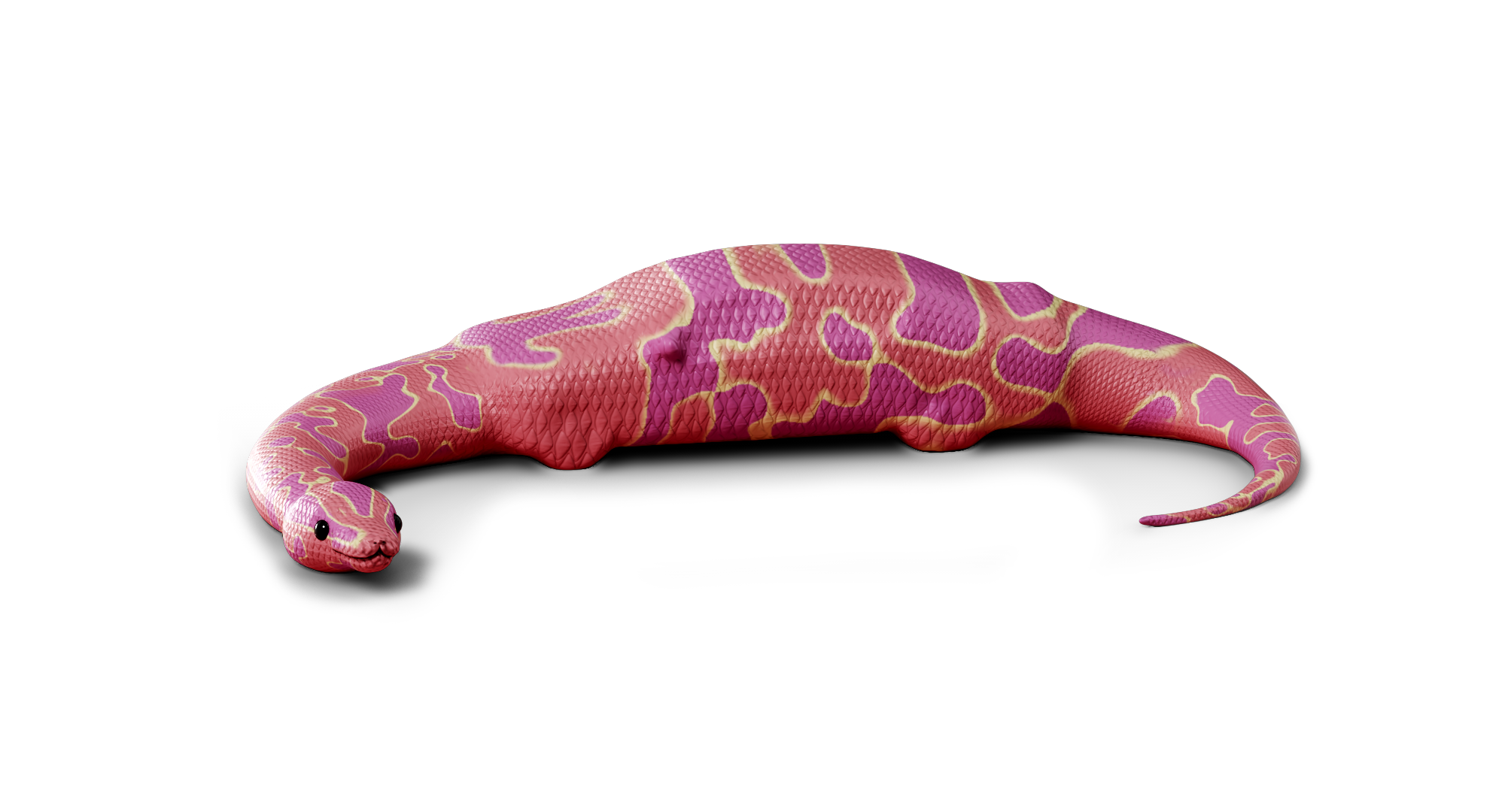 つぶらな瞳でとってもキュートな「ノミコンダさん」。しかし、クリーチャーだけあって、いつもお腹をすかせて獲物を探しています。自分より大きなものだってなんのその。二宮金次郎的なものをはじめ、高級車、まねきねこ、トロフィー、果ては国会議事堂まで!なんでもかんでもまるのみにしてしまいます。研究者によれば、人間の欲望にまつわるもの、お金や権威、権力にまつわるものが特に大好物なんだとか。ゴムのようにどこまでも伸びるノミコンダさんのカラダ。のみこんだもののシルエットがうっすらとわかるのがチャームポイント。おおよそ一週間かけて溶かしてしまうそうですよ。のみこんだものの種類によって体の色が変わるのも特徴です。