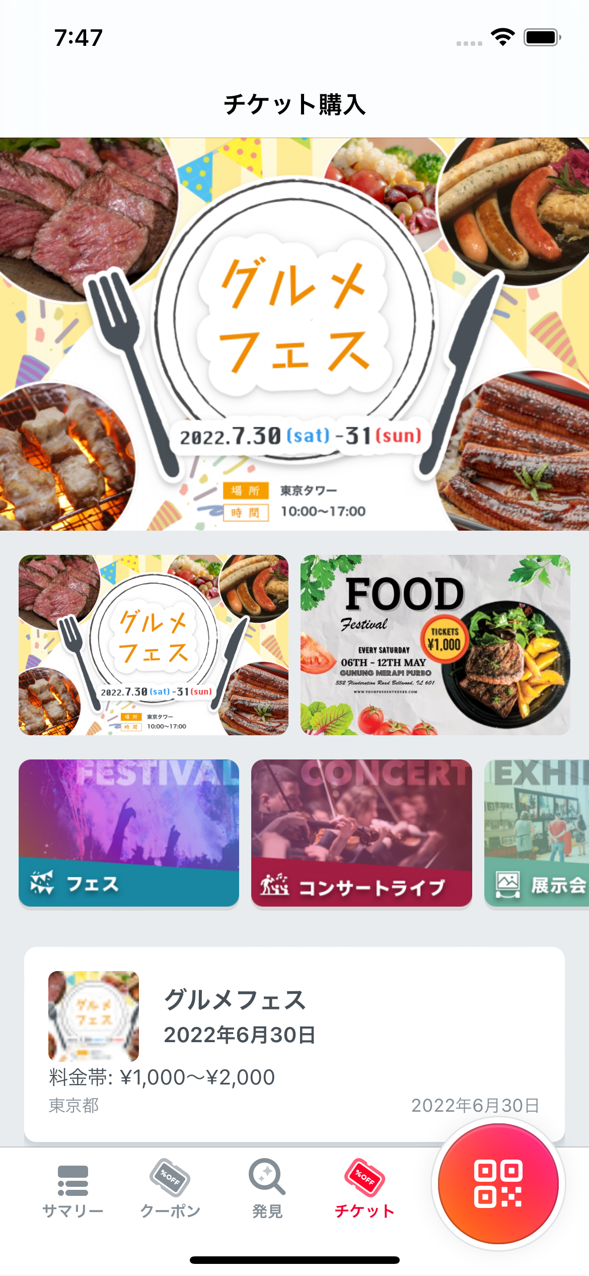 イベントやコンサート、スポーツ等のチケット購入が可能に