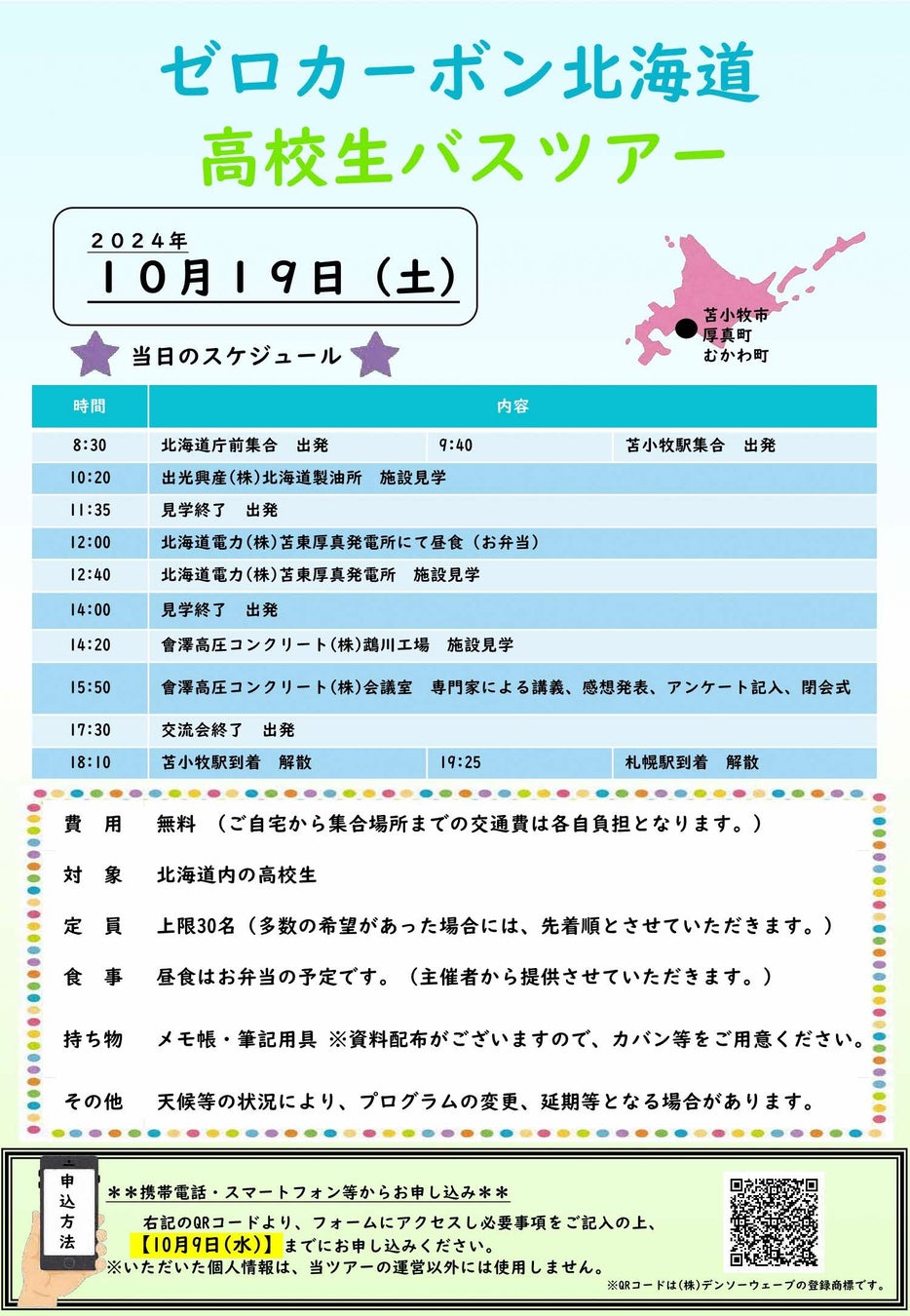 ゼロカーボン北海道高校生バスツアーin苫小牧市、厚真町、むかわ町