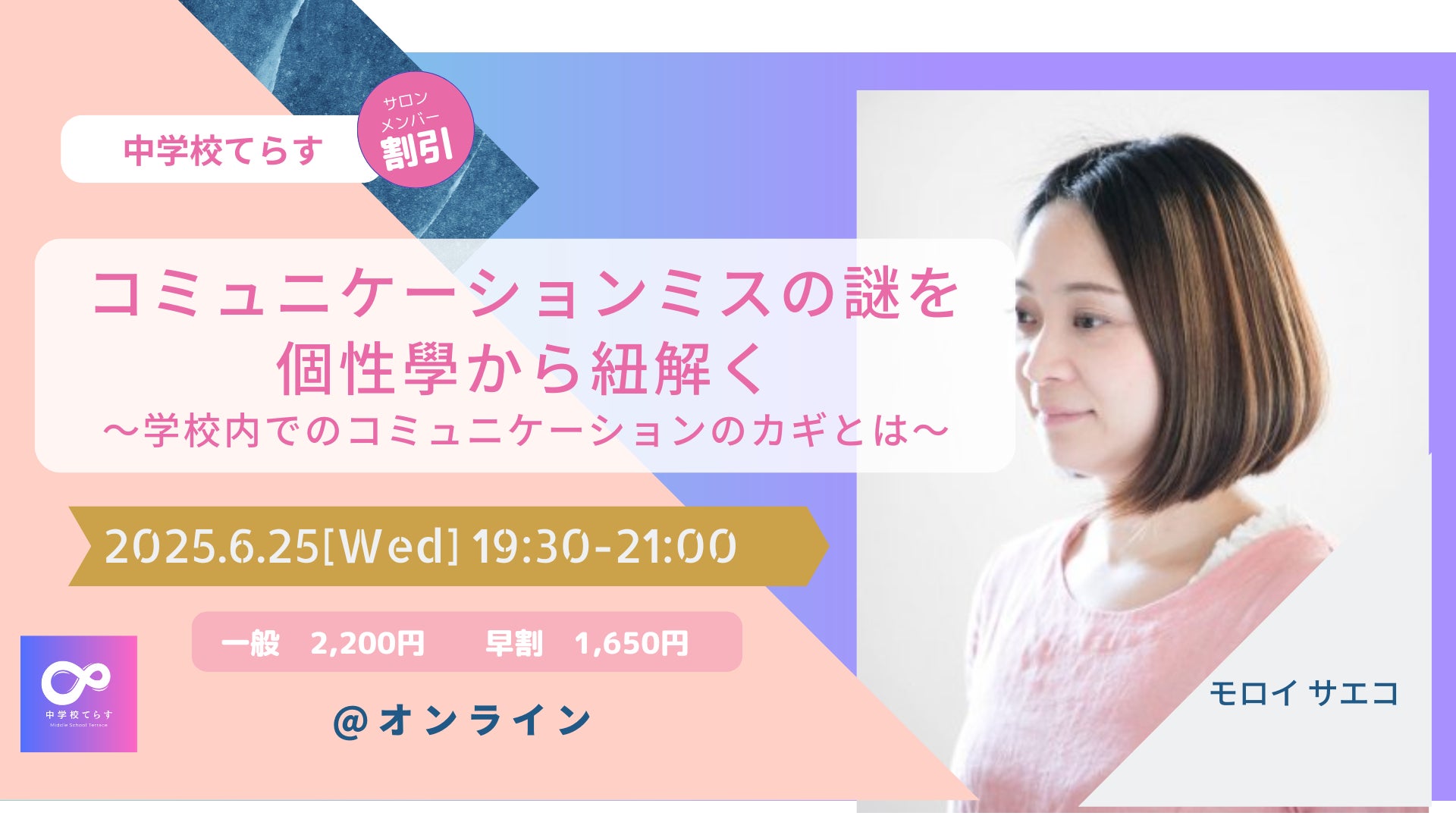 コミュニケーションミスの謎を個性學から紐解く~学校内でのコミュニケーションのカギとは~ 6月25日(水)開催!