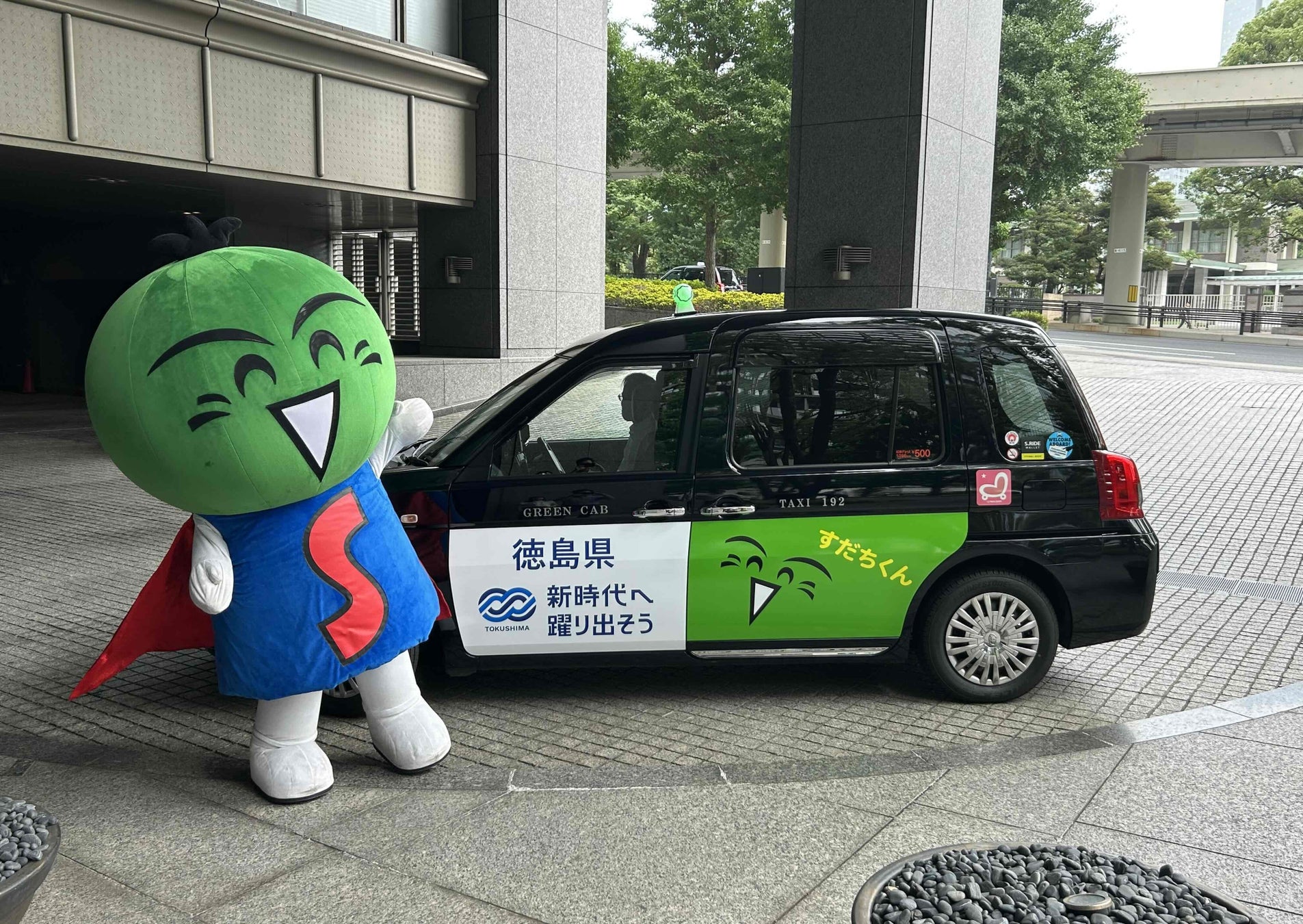 7月7日(月)~8月3日(日)の期間で徳島県のマスコットキャラクター「すだちくん」をラッピングしたタクシーが東京都内(東京23区、武蔵野/三鷹地区)で限定10台走行(株式会社グリーンキャブ)します。車内では徳島県の「食」や「観光」等の魅力が詰まった映像をご覧いただけます。