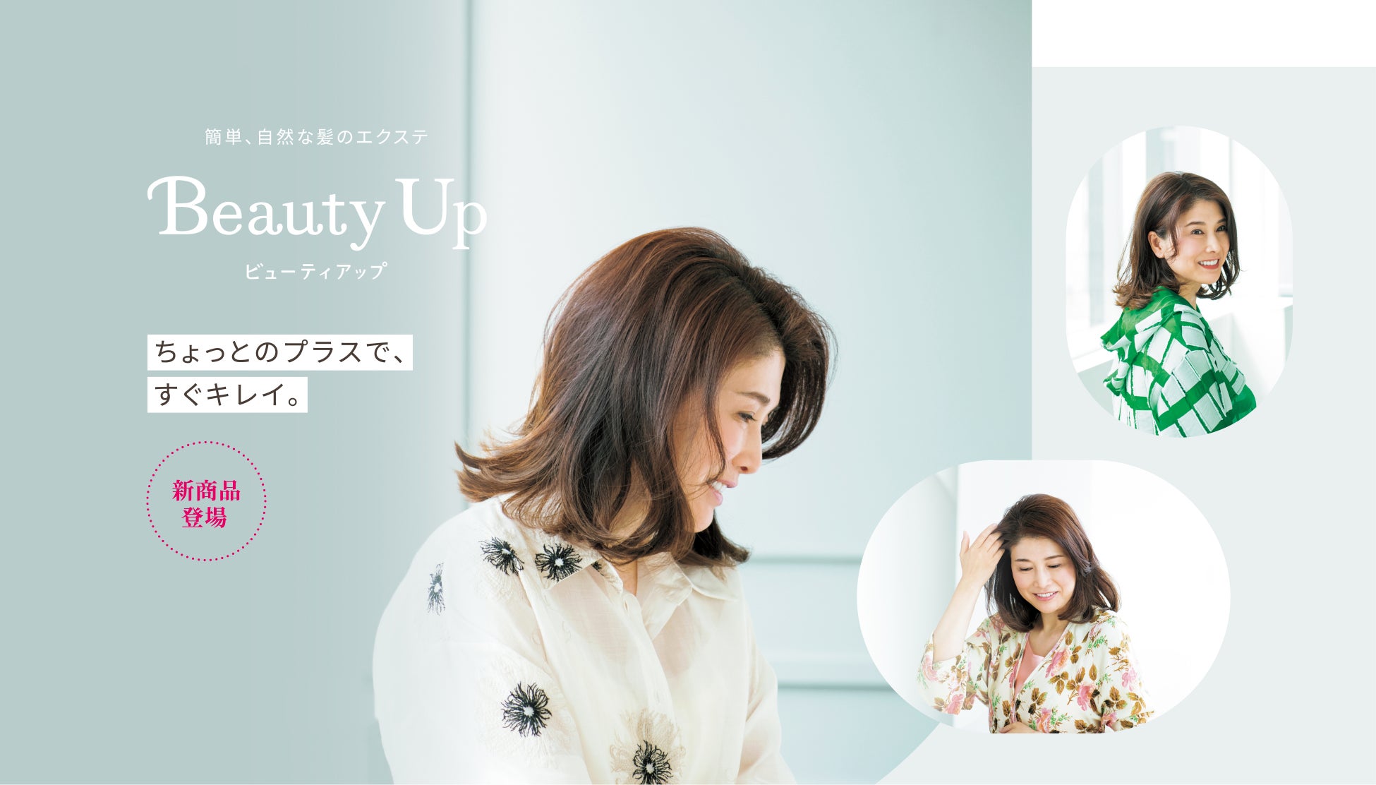 ビューティアップは、自分の髪をいかして、ほしい所にほしい分だけプラスでき、24時間自分の髪感覚。自分の髪と自然になじむからこそ、長く付き合えるアイテムです。