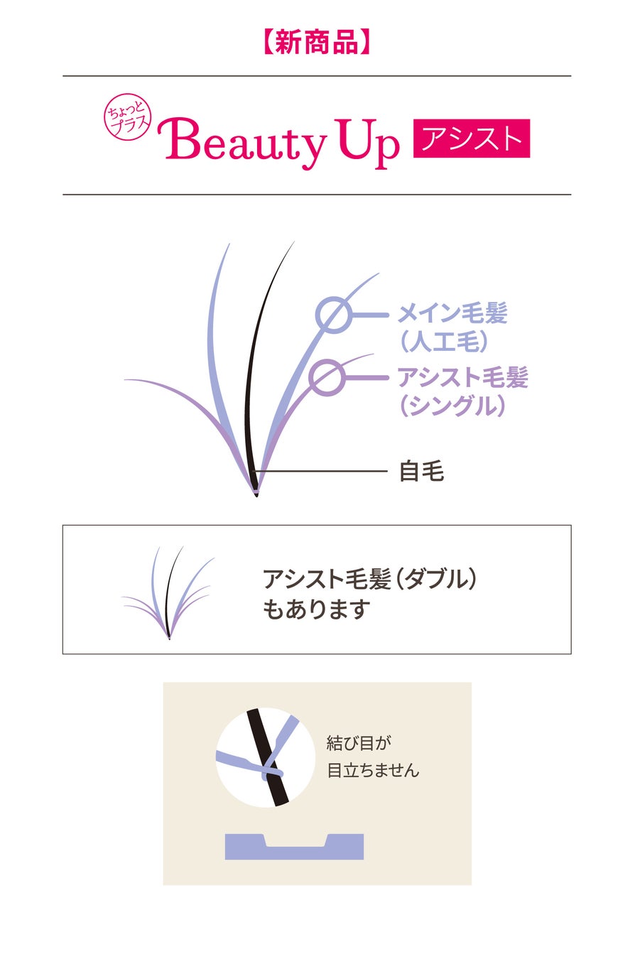 メイン毛髪を支えるアシスト毛髪を、約10cmと従来の約3cmより長くすることで、より自然になじむように設計。