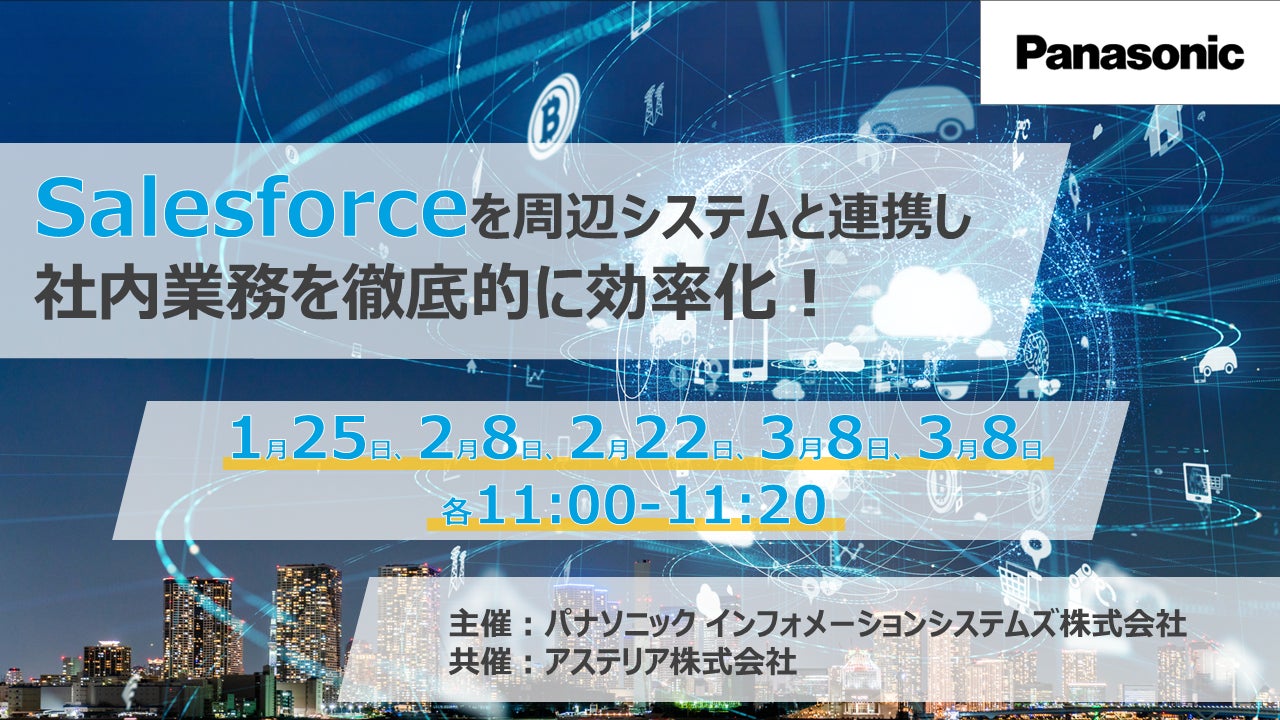 パナソニック インフォメーションシステムズ株式会社は、2023年1月25日(水)より、Salesforce連携にフォーカスしたウェビナーを開催します。