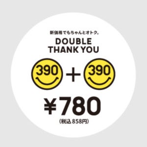店内商品は、390円を中心としたリーズナブルな価格設定です。ハーフサンキュー(税抜195円)やダブルサンキュー(税抜780円)などの新しい価格も導入し、手に取りやすい価格を追求しています。