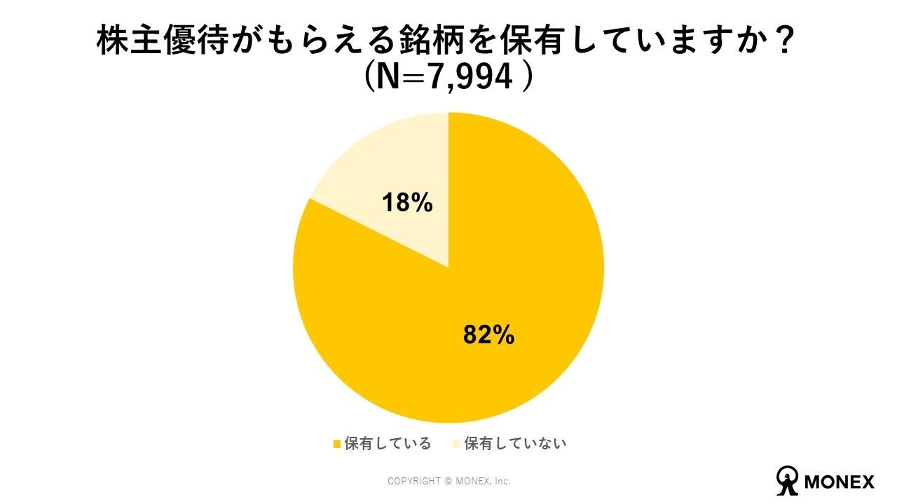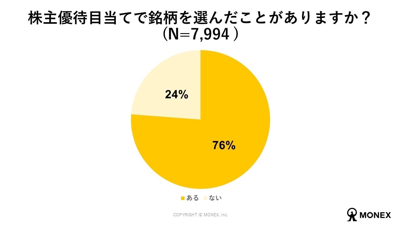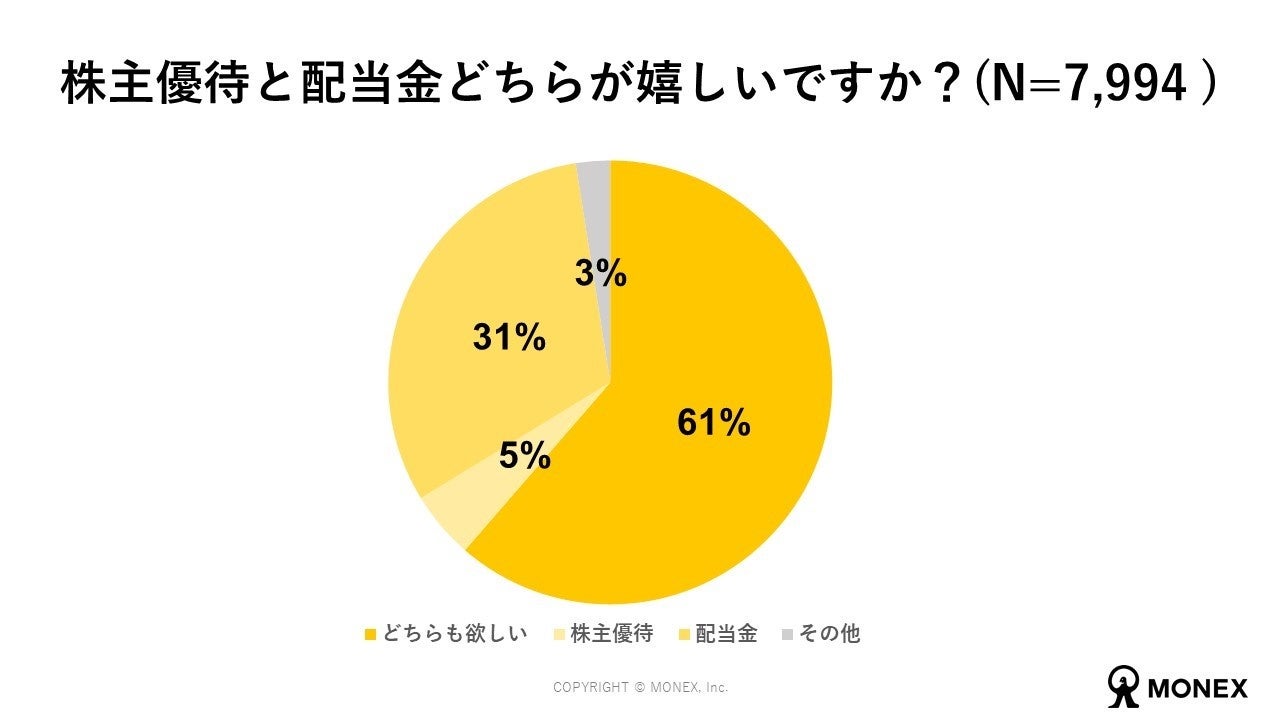 マネックス証券株式会社(本社:東京都港区、代表取締役社長:清明祐子、以下「マネックス証券」)は、株主優待の権利をもらえる企業が1年で一番多い3月を迎え、株主優待と配当金に関する意識調査を実施いたしました。本調査はマネックス証券に口座を保有している方を対象に行い、計7,994名の回答を得ましたのでその結果を公表いたします。