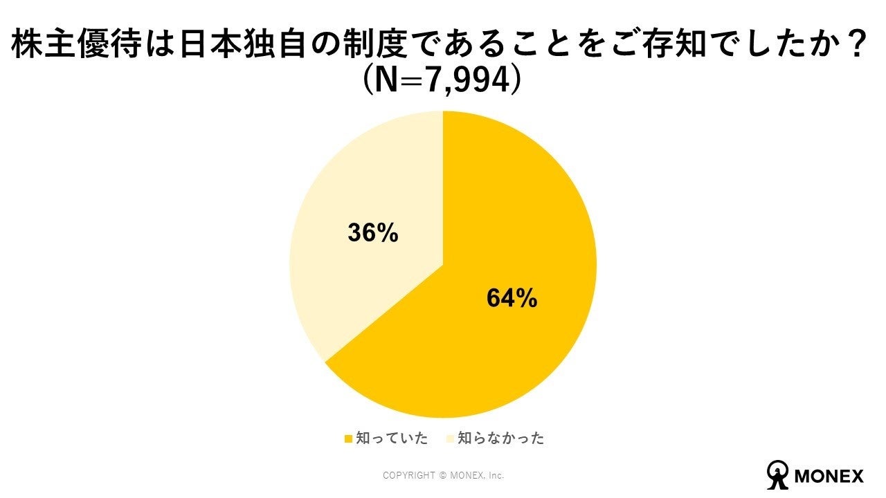 株主優待は日本独自の制度なのですが、36%の個人投資家がその事実を知らないということが分かりました。独自の制度であるという認知は昨年から変化しておらず、新しく株式投資を始めた個人投資家などにはまだまだ認知拡大の余地はありそうです。