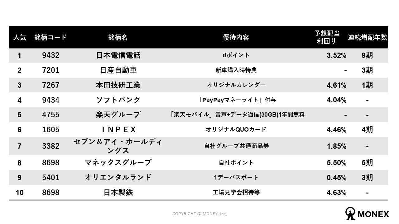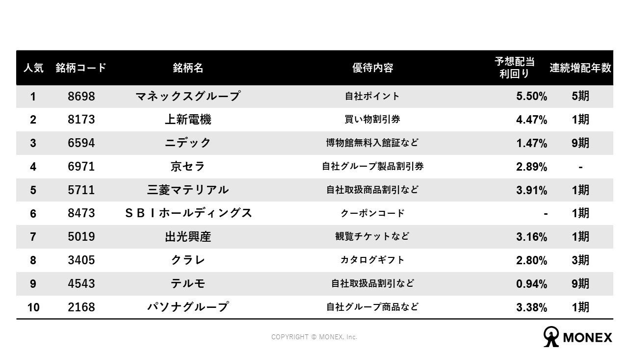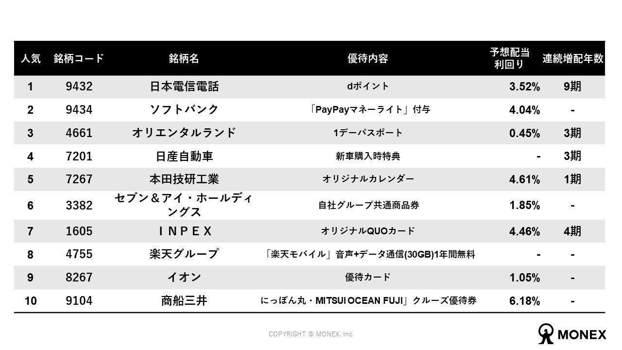 2-3 単元未満株(ワン株)で株主優待がある銘柄人気ランキングTOP10(口座数ベース)