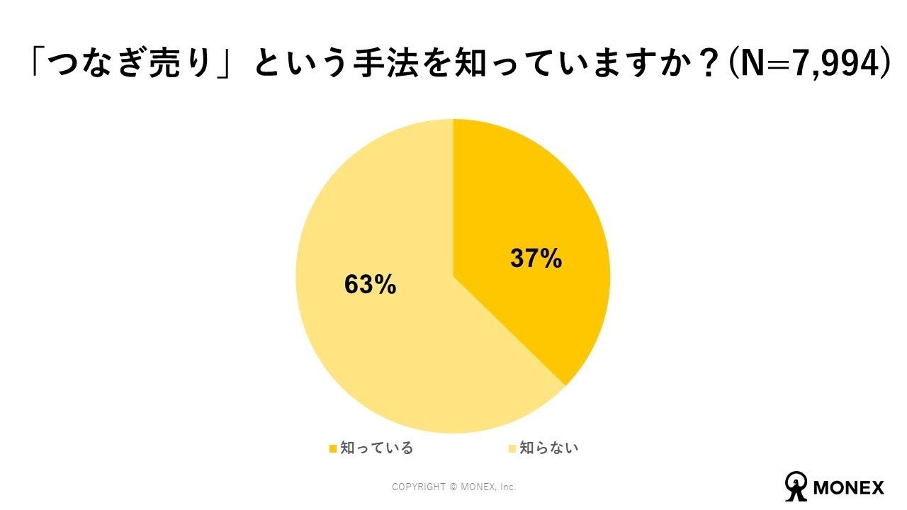 つなぎ売りとは、保有している株式の値下がりが予想される際に、現物株式を売却せずに信用取引で空売りすることです。価格の変動リスクを抑えて株主優待を取得できるのですが、手法を知っている人は37%にとどまりました。安定した取引のために、この手法を広めていく余地が大きいと感じています。