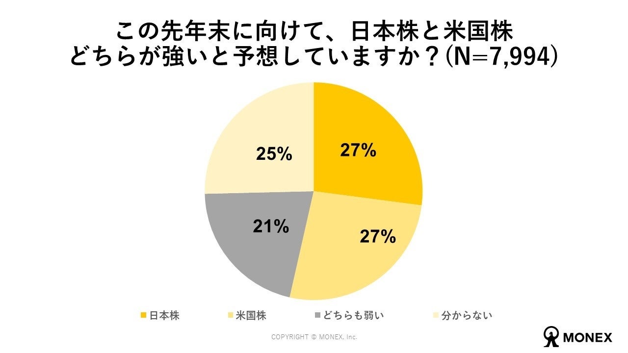 年末に向けての日本株と米国株の予想を聞いたところ、全ての項目に回答が分散する結果となりました。トランプ政権の影響が読みにくくなってきていることや、そこに日経平均株価がひきずられている状況を見て、個人投資家が独自に予想、判断をすることがどんどん難しくなっているのではないでしょうか。