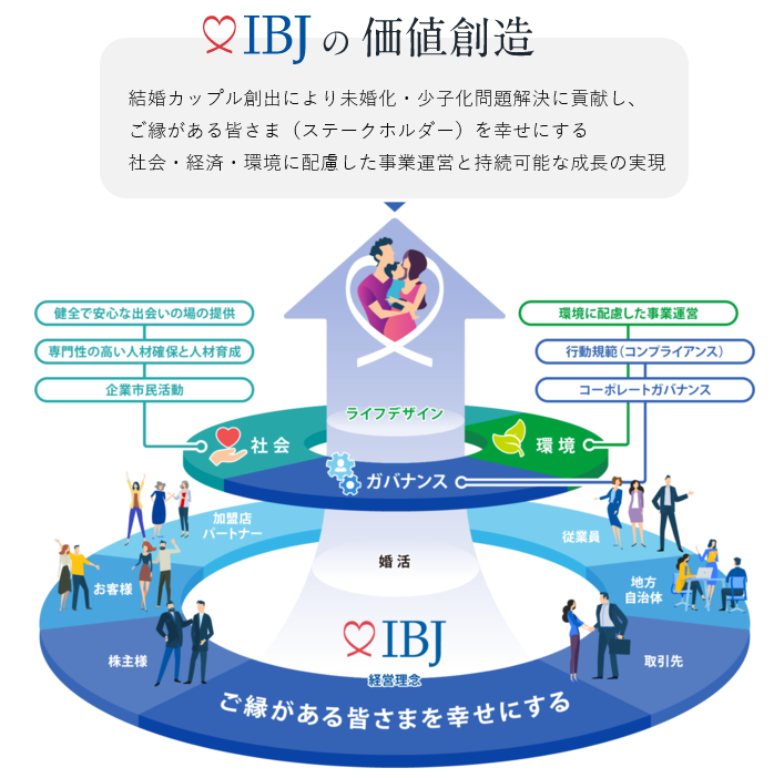 【婚活のIBJ】サステナビリティへの取り組みを公開。『IBJの価値創造』を通じて、持続可能な社会の実現に貢献する。