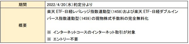■楽天ETF-日経レバレッジ指数連動型(1458)および楽天ETF-日経ダブルインバース指数連動型(1459)の手数料完全無料化