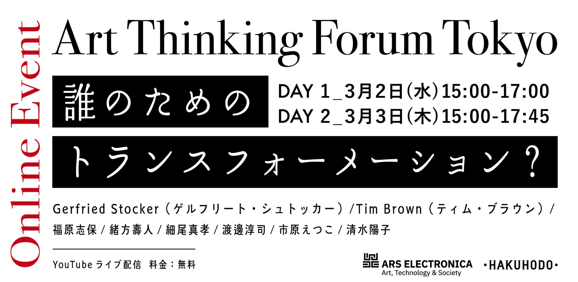 【博報堂×アルスエレクトロニカ オンライントークイベント】「Art Thinking Forum Tokyo誰のためのトランスフォーメーション?」3月2日(水)、3日(木)に開催