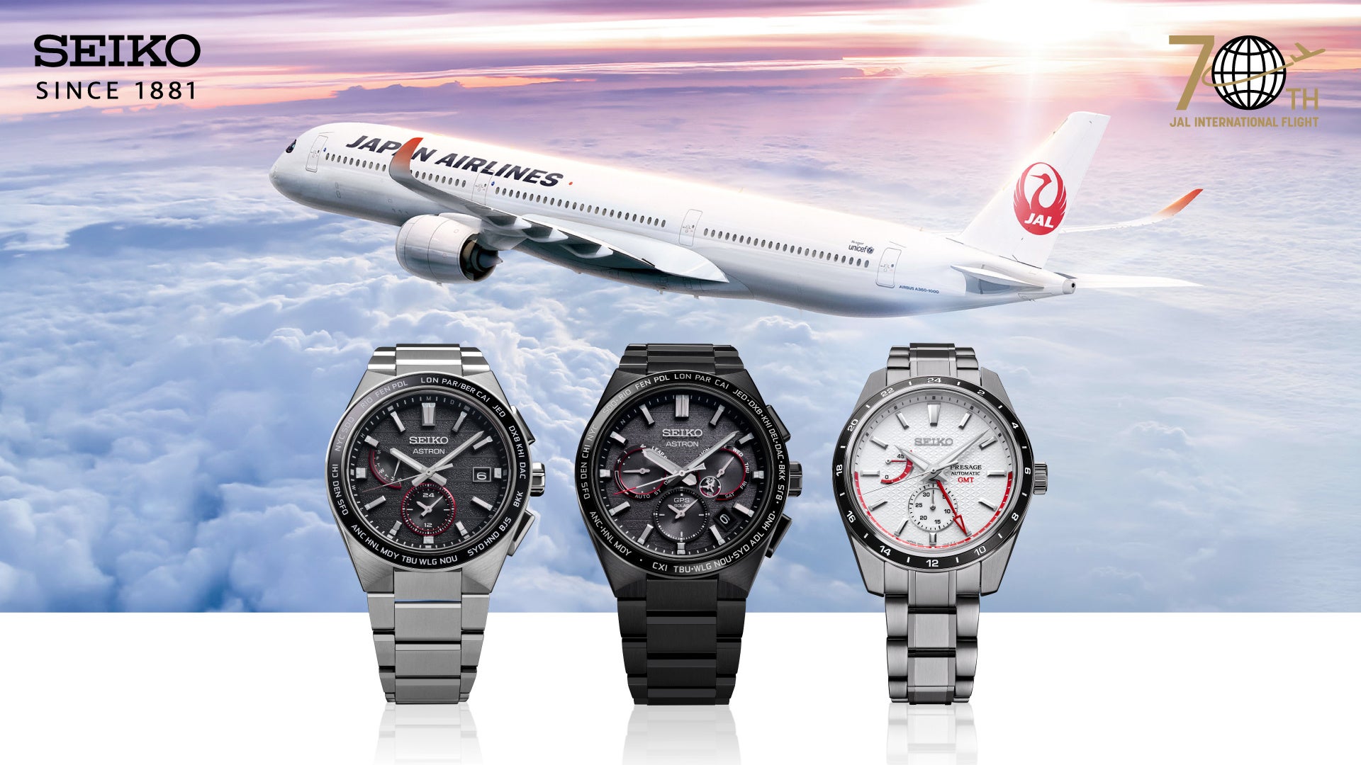 <セイコー アストロン>と<セイコー プレザージュ>より、JAL国際線就航70周年を記念したコラボレーション限定モデルを発売